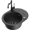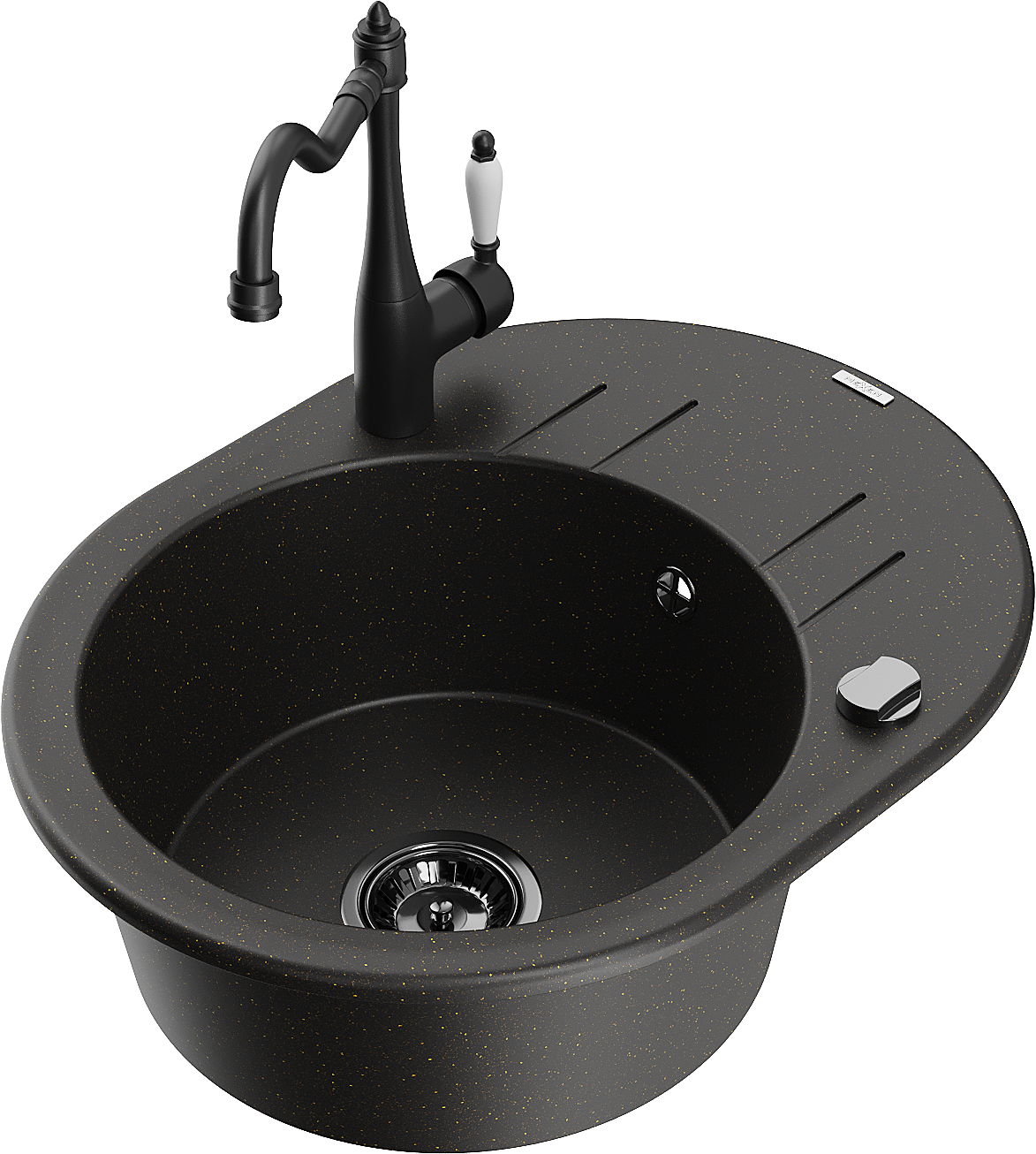 Mexen Kevin granitový drez 1-komorový s odkvapkávačom a kuchynská batéria Carla, čierny/zlatý metalik - 6517-75-670700-70-B