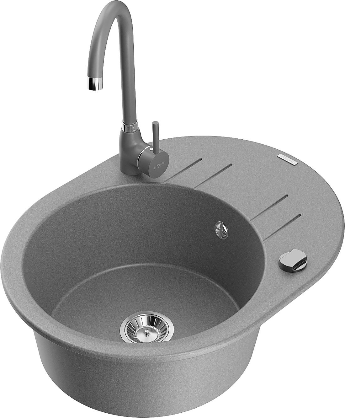 Mexen Kevin žulový drez s 1-miskou s odkvapkávačom a kuchynskou batériou Telma, sivý - 6517-71-670200-71