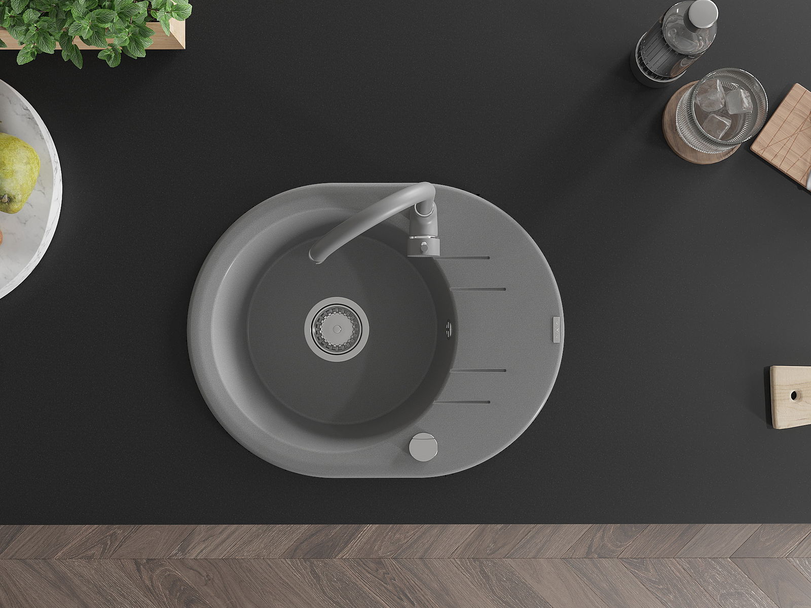 Povrch umývadla je odolný voči škvrnám a sfarbeniu, vďaka čomu sa ľahko čistí a zachováva si svoju farbu po dlhú dobu. Estetický a prakticky dopĺňajúci každú kuchyňu.