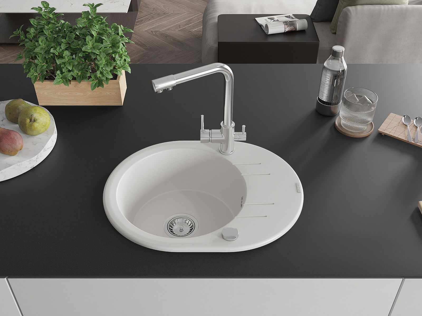 Povrch umývadla je odolný voči škvrnám a sfarbeniu, vďaka čomu sa ľahko čistí a zachováva si svoju farbu po dlhú dobu. Estetický a prakticky dopĺňajúci každú kuchyňu.