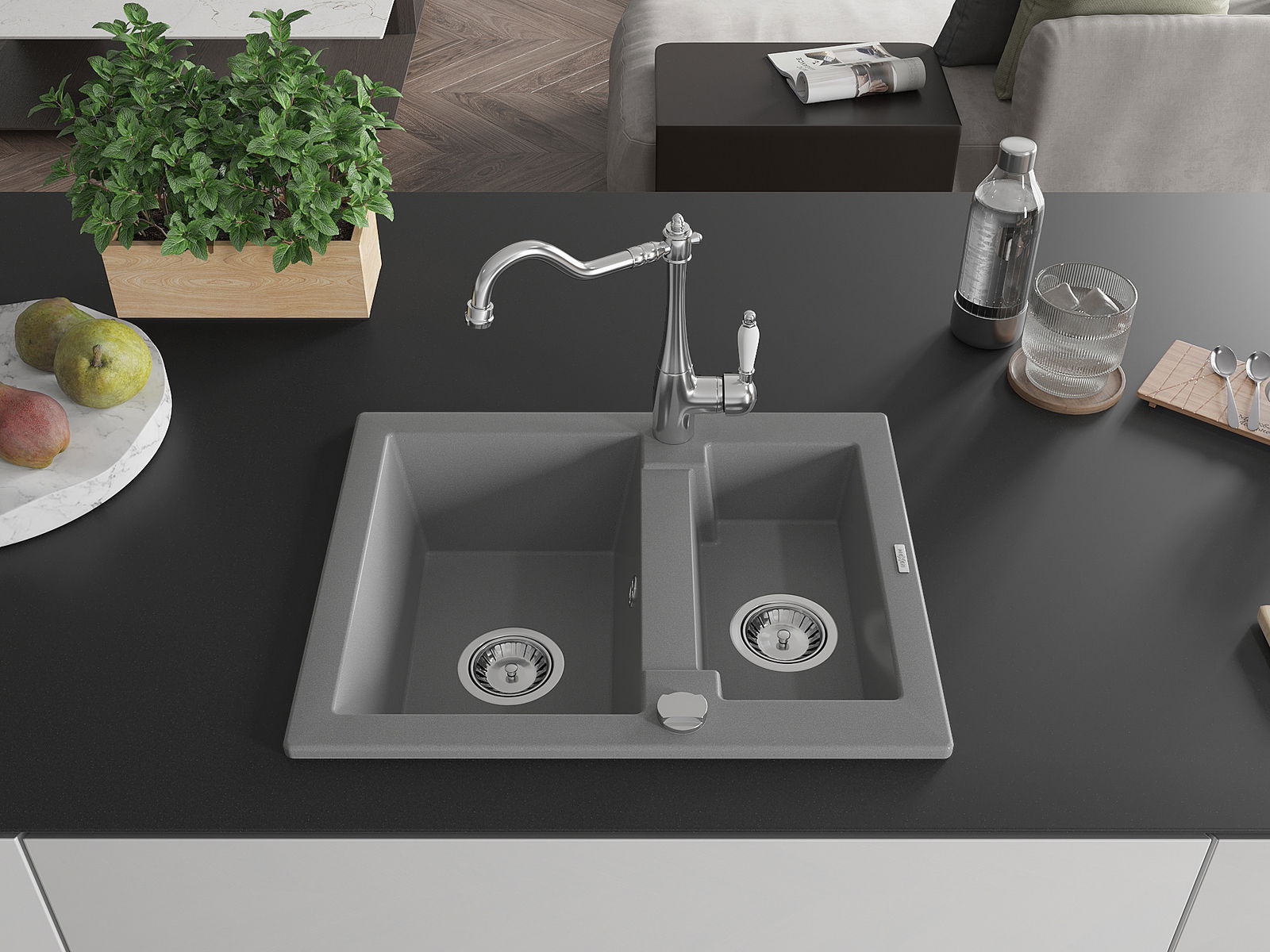 Povrch umývadla je odolný voči škvrnám a sfarbeniu, vďaka čomu sa ľahko čistí a zachováva si svoju farbu po dlhú dobu. Estetický a prakticky dopĺňajúci každú kuchyňu.