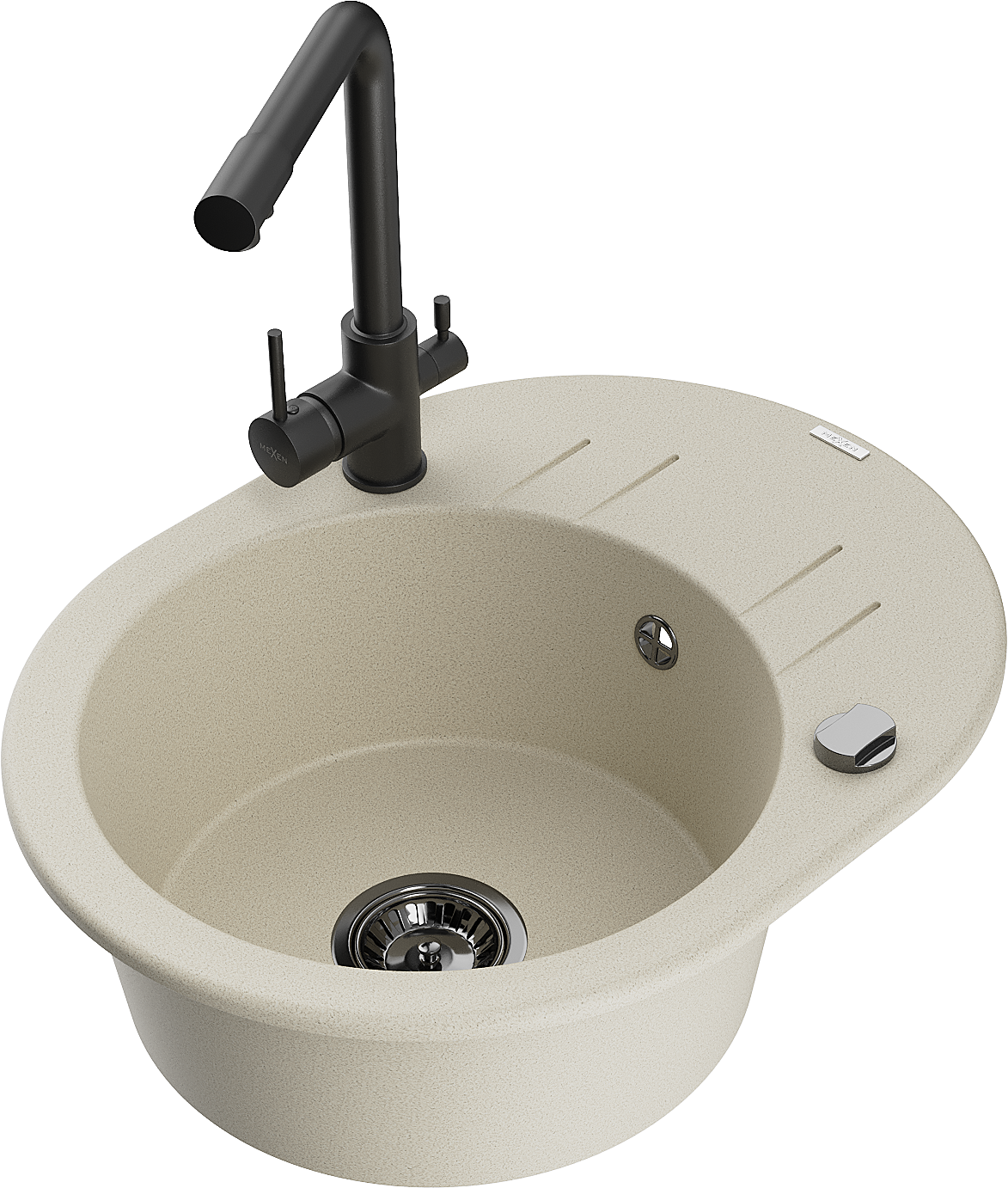 Mexen Kevin granitový drez 1-komorový s odkvapkávačom a kuchynskou batériou Duero, béžový - 6517-69-671600-70