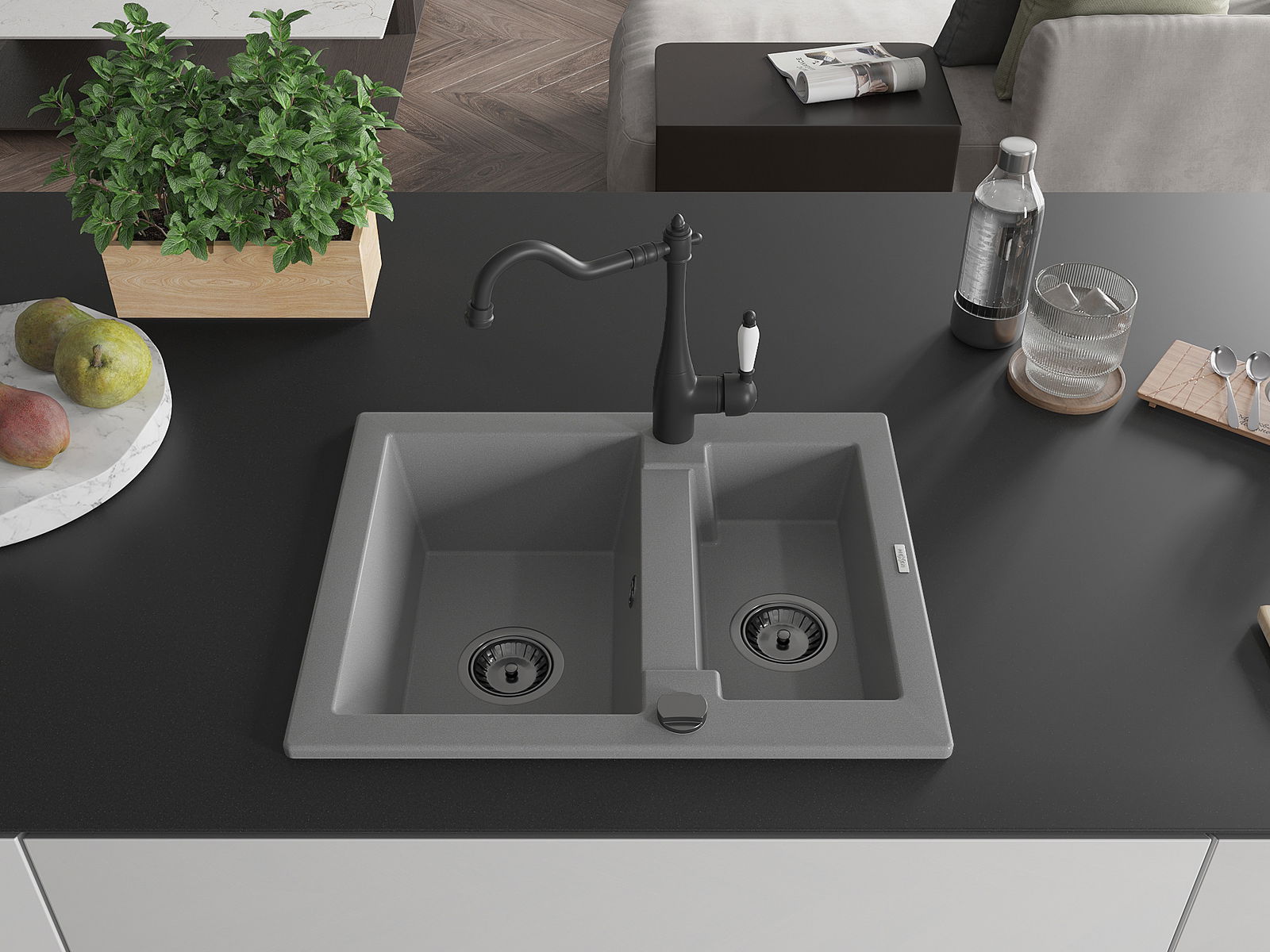 Povrch umývadla je odolný voči škvrnám a sfarbeniu, vďaka čomu sa ľahko čistí a zachováva si svoju farbu po dlhú dobu. Estetický a prakticky dopĺňajúci každú kuchyňu.