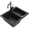 Mexen Carlos žulový drez 1,5-komorový s kuchynskou batériou Carla, sivý - 6518-71-670700-70-B