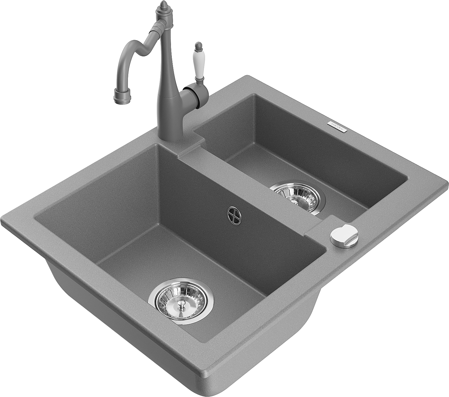 Mexen Carlos granitový kuchynský drez 1,5-komorový s kuchynskou batériou Carla, sivý - 6518-71-670700-71