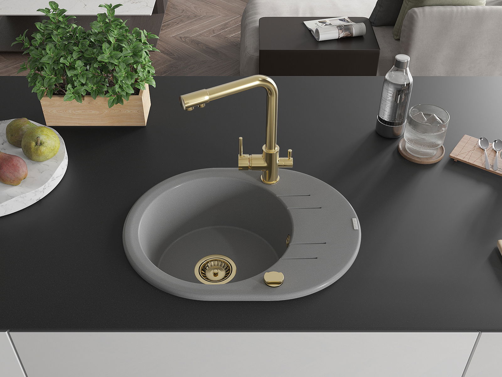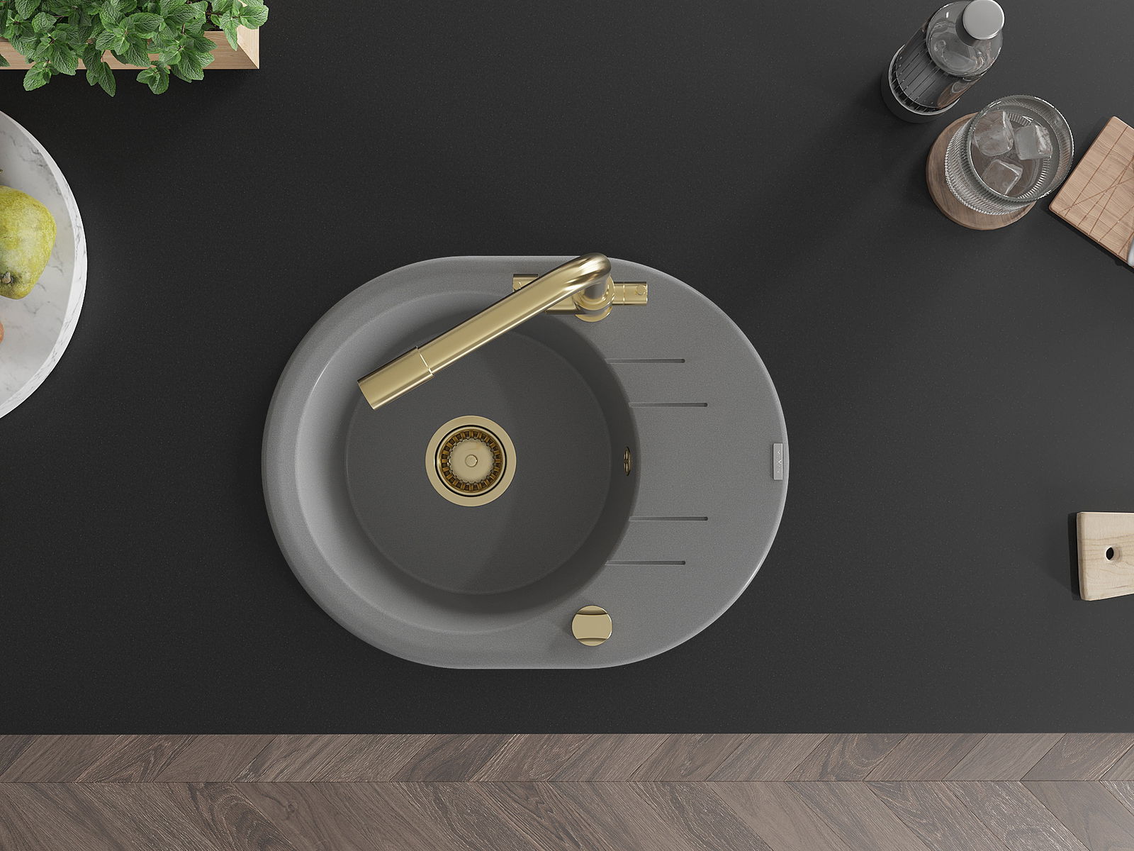 Povrch umývadla je odolný voči škvrnám a sfarbeniu, vďaka čomu sa ľahko čistí a zachováva si svoju farbu po dlhú dobu. Estetický a prakticky dopĺňajúci každú kuchyňu.