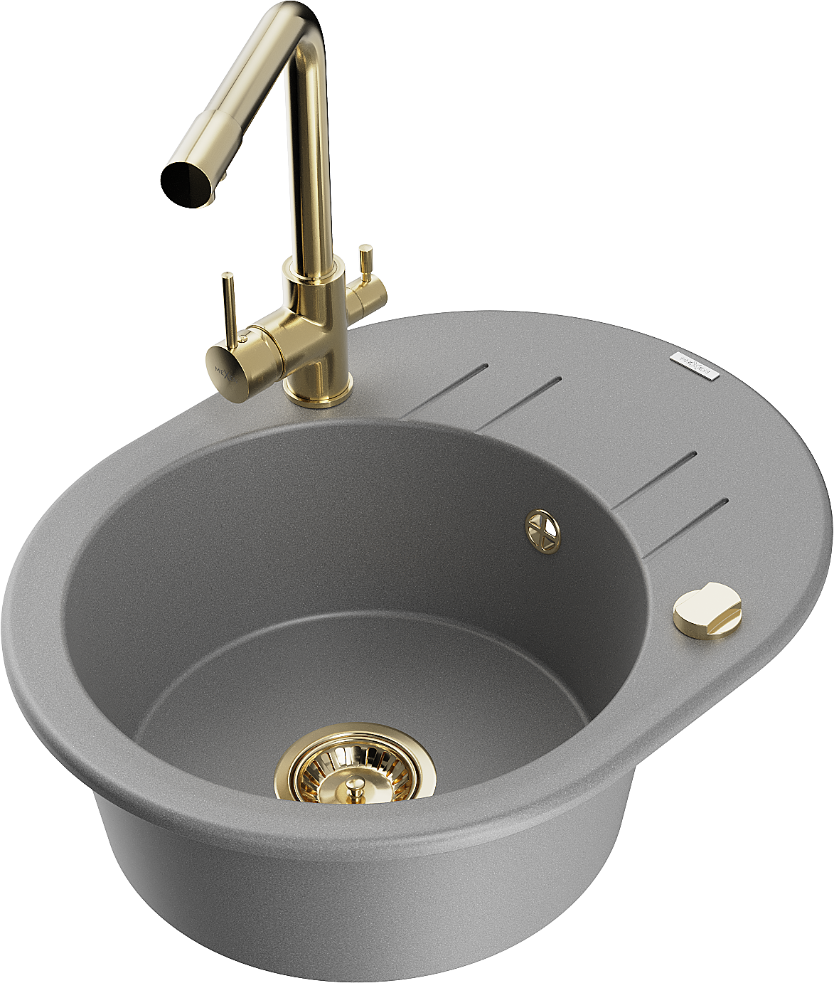 Mexen Kevin granitový drez s 1 komorou a odkvapkávačom a kuchynská batéria Duero, sivá - 6517-71-671600-50