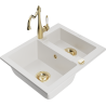 Povrch kuchynského drezu je odolný voči škvrnám a zafarbeniu, vďaka čomu sa ľahko udržiava a zachováva svoju farbu počas dlhého obdobia používania. Estetický a praktický doplnok pre každú kuchyňu.