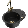 Mexen Kevin granitový kuchynský drez s 1 komorou, odtokom a kuchynskou batériou Duero, čierno/strieborný metalický