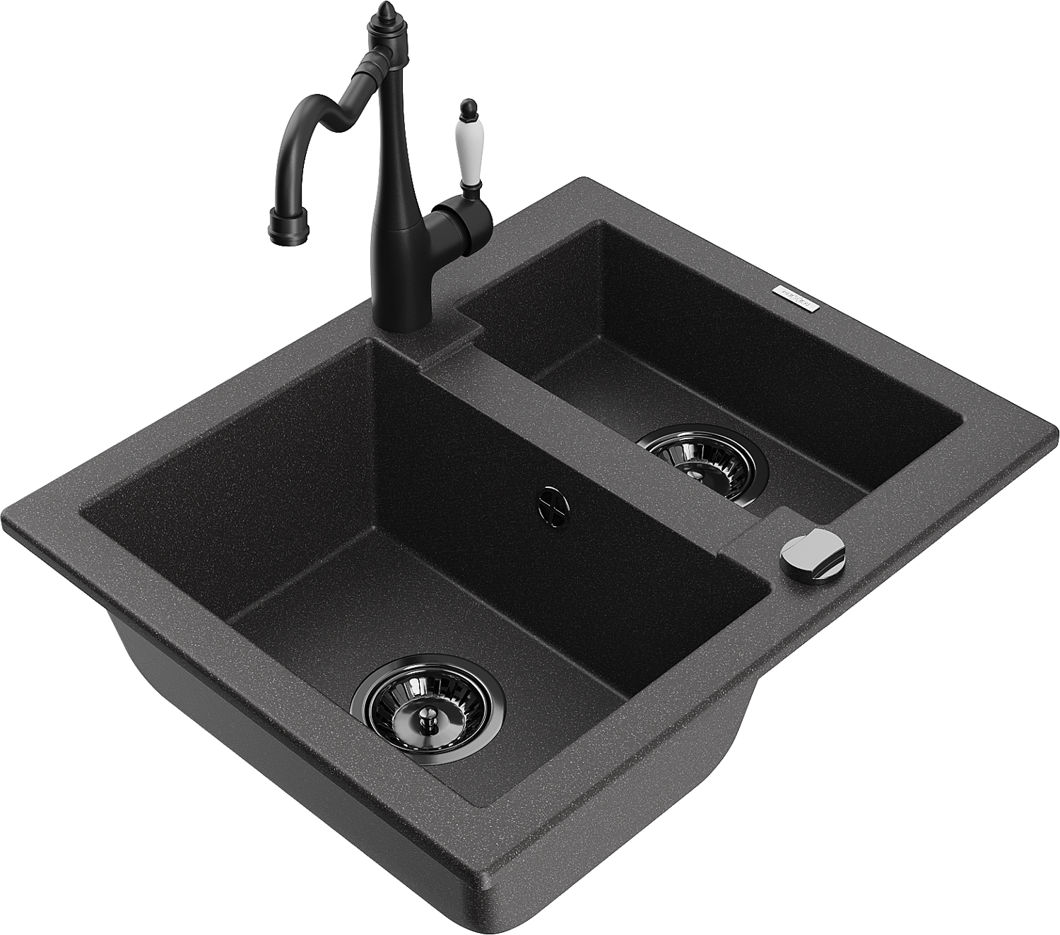 Mexen Carlos žulový drez 1,5-komorový s kuchynskou batériou Carla, čierny škvrnitý - 6518-76-670700-70-B