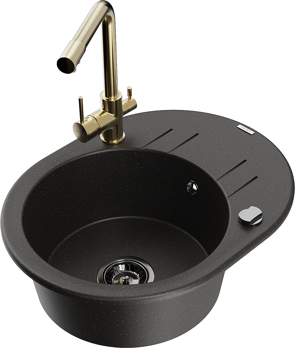 Mexen Kevin granitový kuchynský drez 1-komorový s odkvapkávačom a kuchynskou batériou Duero, čierny/zlatý metalický - 6517-75-6?
