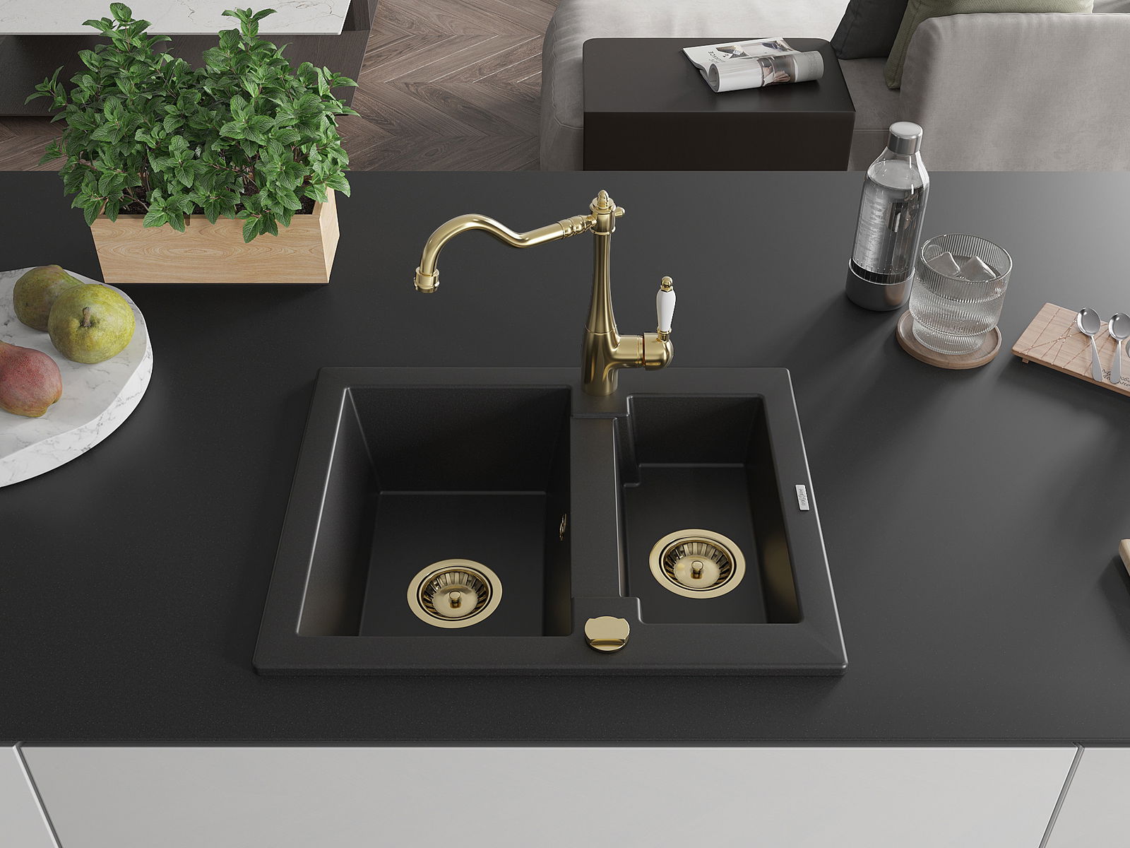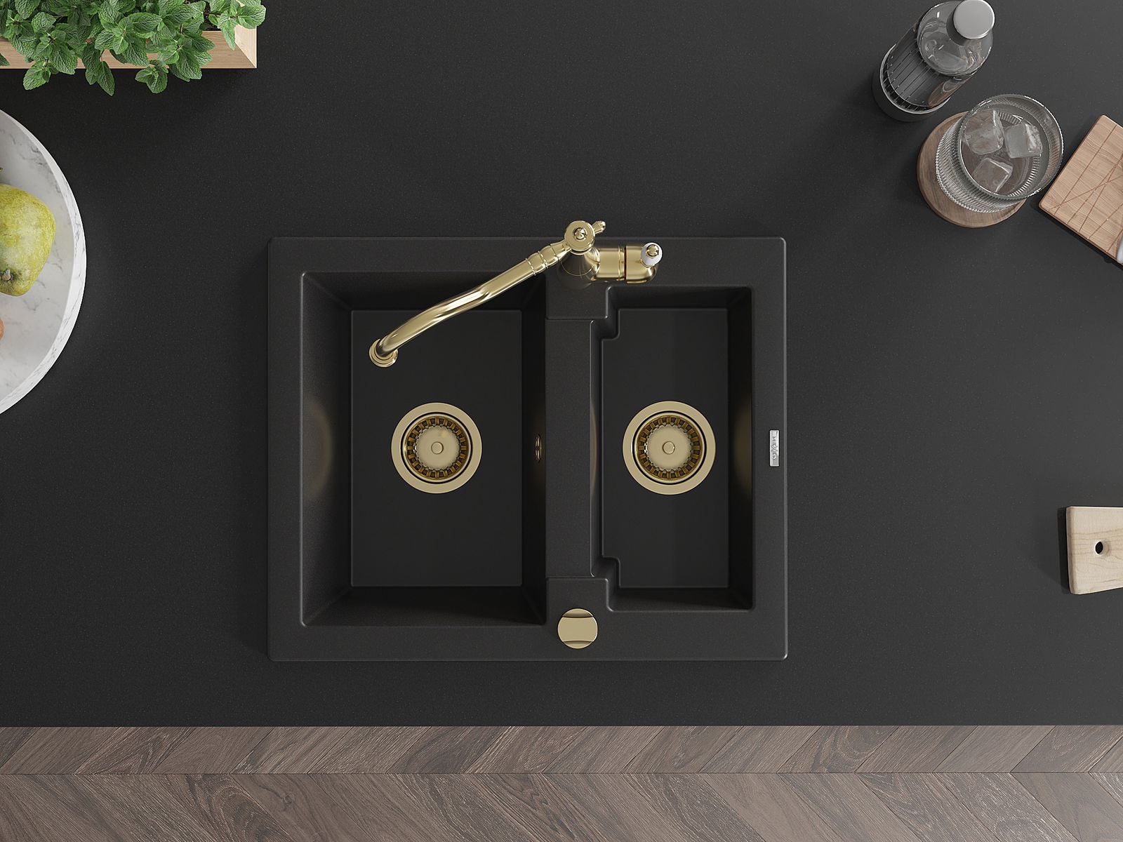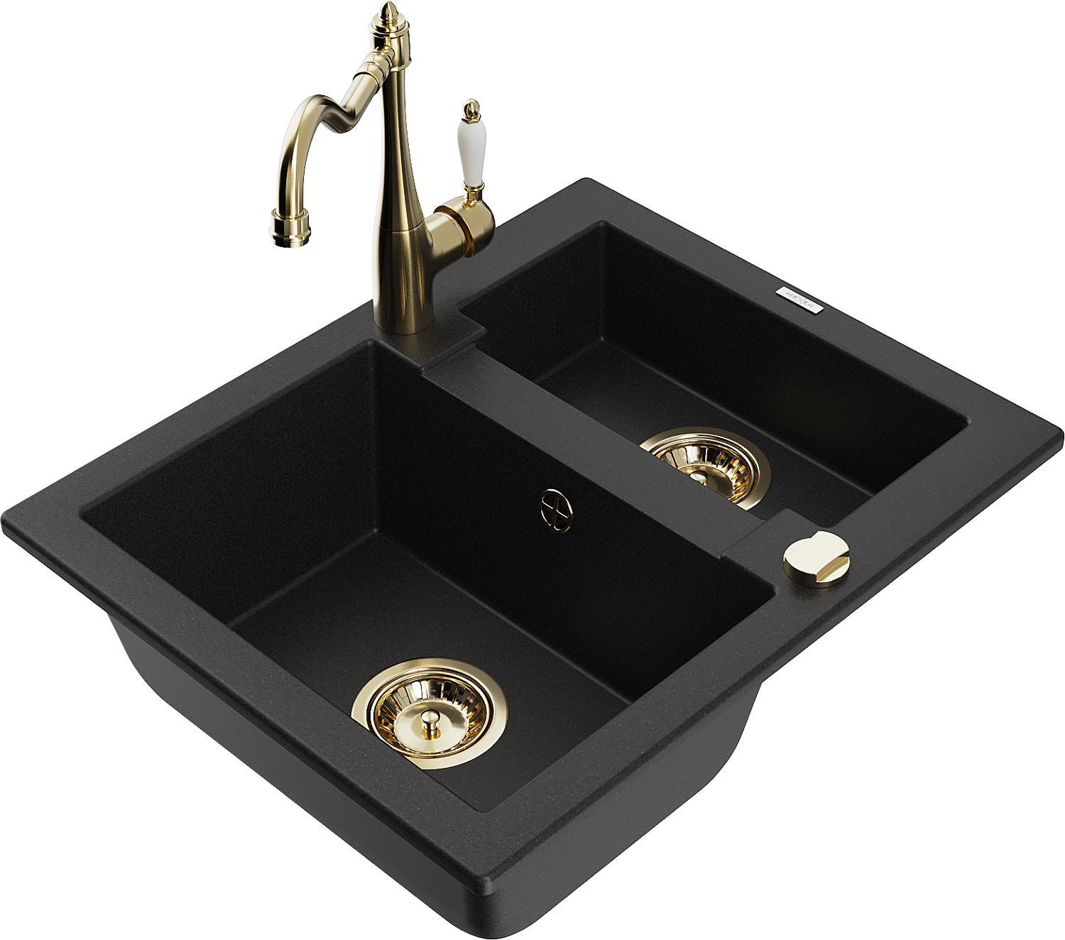 Mexen Carlos granitový drez 1,5-komorový s kuchynskou batériou Carla, čierny - 6518-77-670700-50