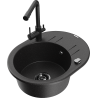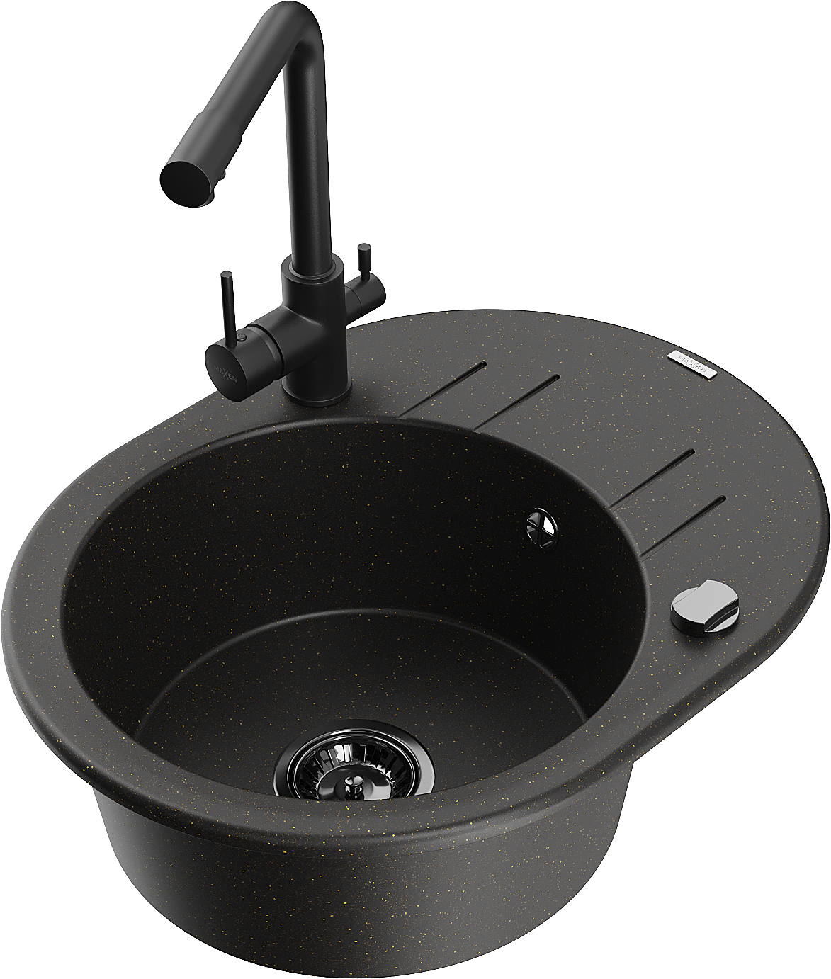 Mexen Kevin Granitový drez s jednou komorou s odkvapkávačom a kuchynskou batériou Duero, čierny/zlatý metalický