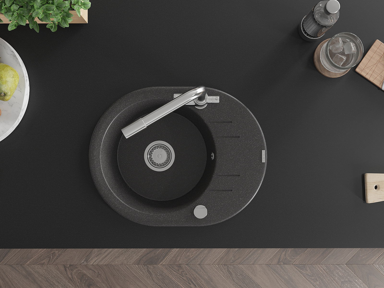 Povrch umývadla je odolný voči škvrnám a sfarbeniu, vďaka čomu sa ľahko čistí a zachováva si svoju farbu po dlhú dobu. Estetický a prakticky dopĺňajúci každú kuchyňu.