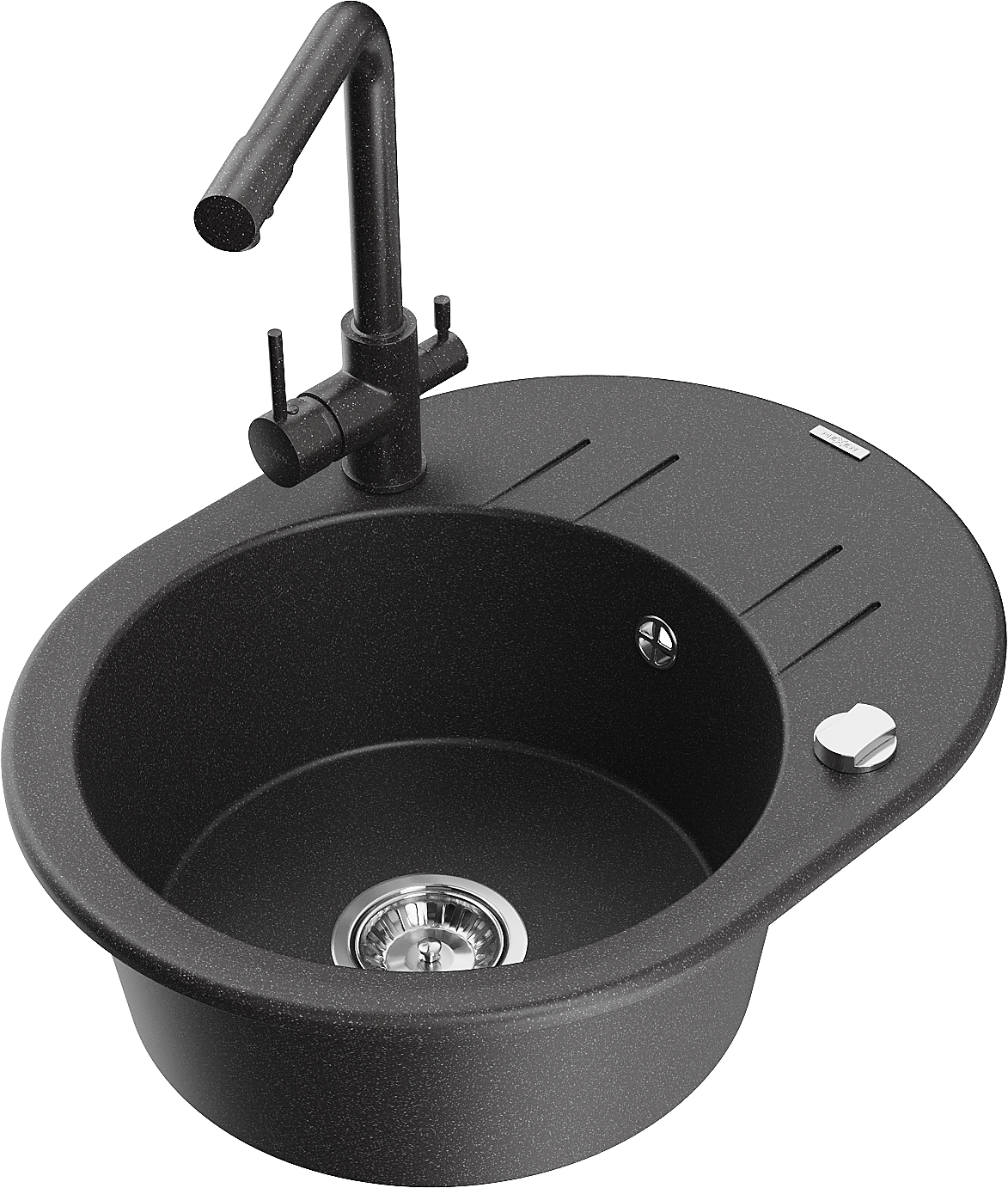 Mexen Kevin granitový drez 1-komorový s odkvapkávačom a kuchynskou batériou Duero, čierny bodkovaný - 6517-76-671600-76