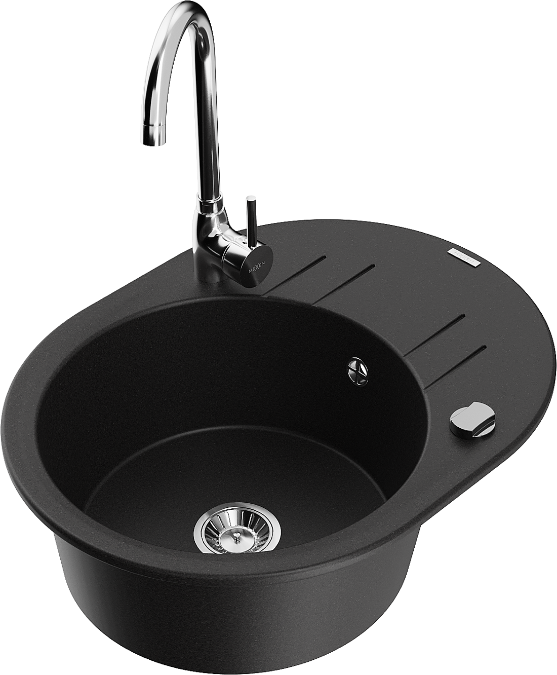Mexen Kevin granitový drez 1-komorový s odkvapkávačom a kuchynskou batériou Telma, čierny - 6517-77-670200-00