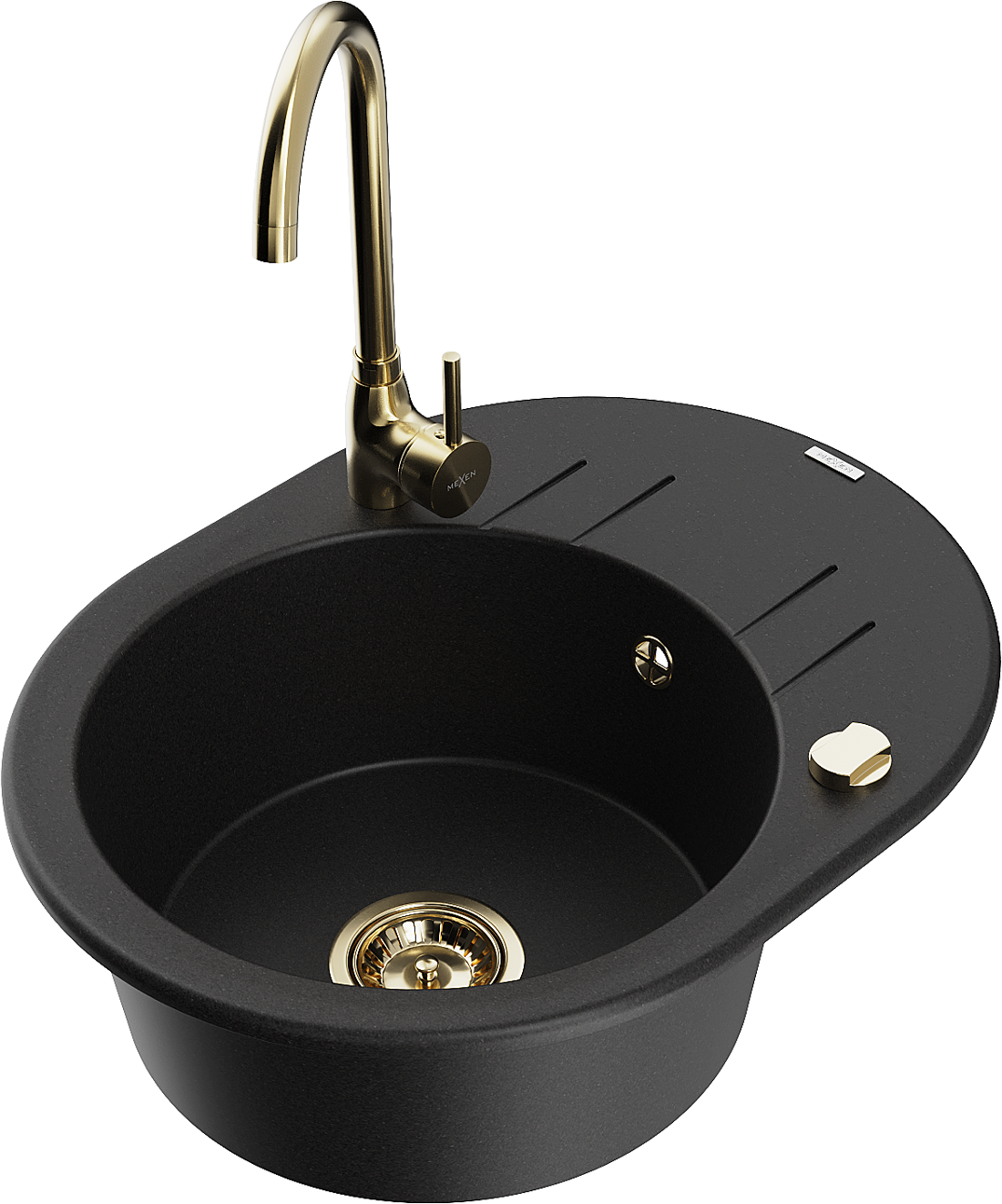 Mexen Kevin žulový drez 1-komorový s odkvapkávačom a kuchynskou batériou Telma, čierny - 6517-77-670200-50