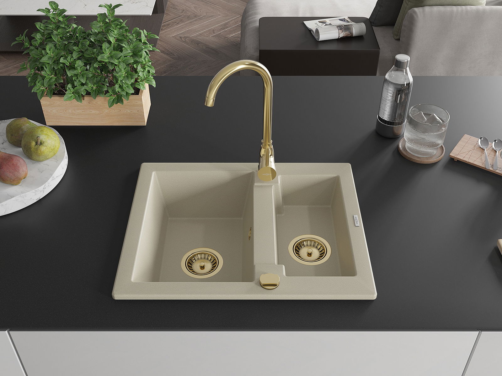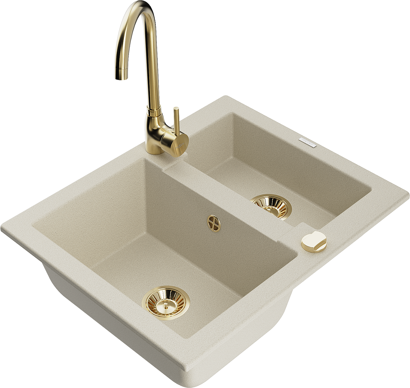 Mexen Carlos žulový 1,5-komorový drez s kuchynskou batériou Telma, béžový - 6518-69-670200-50