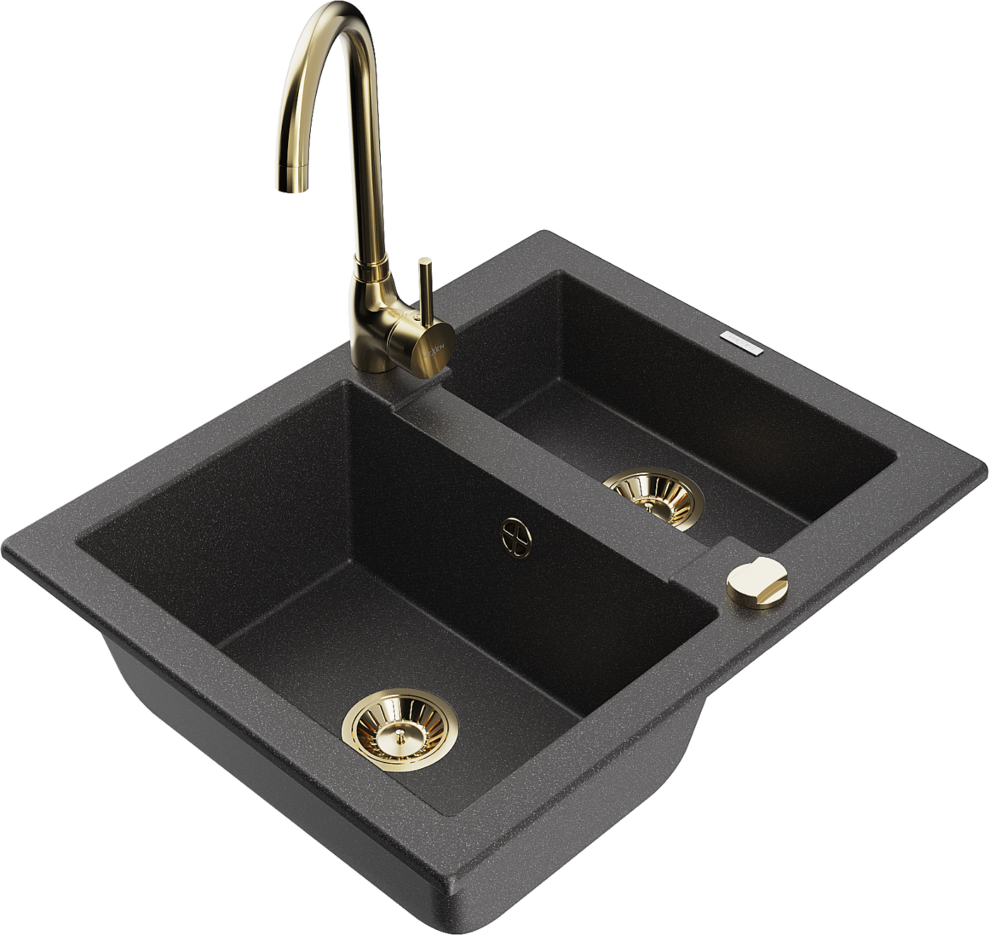 Mexen Carlos granitový drez 1,5-komorový s kuchynskou batériou Telma, čierna bodkovaná - 6518-76-670200-50