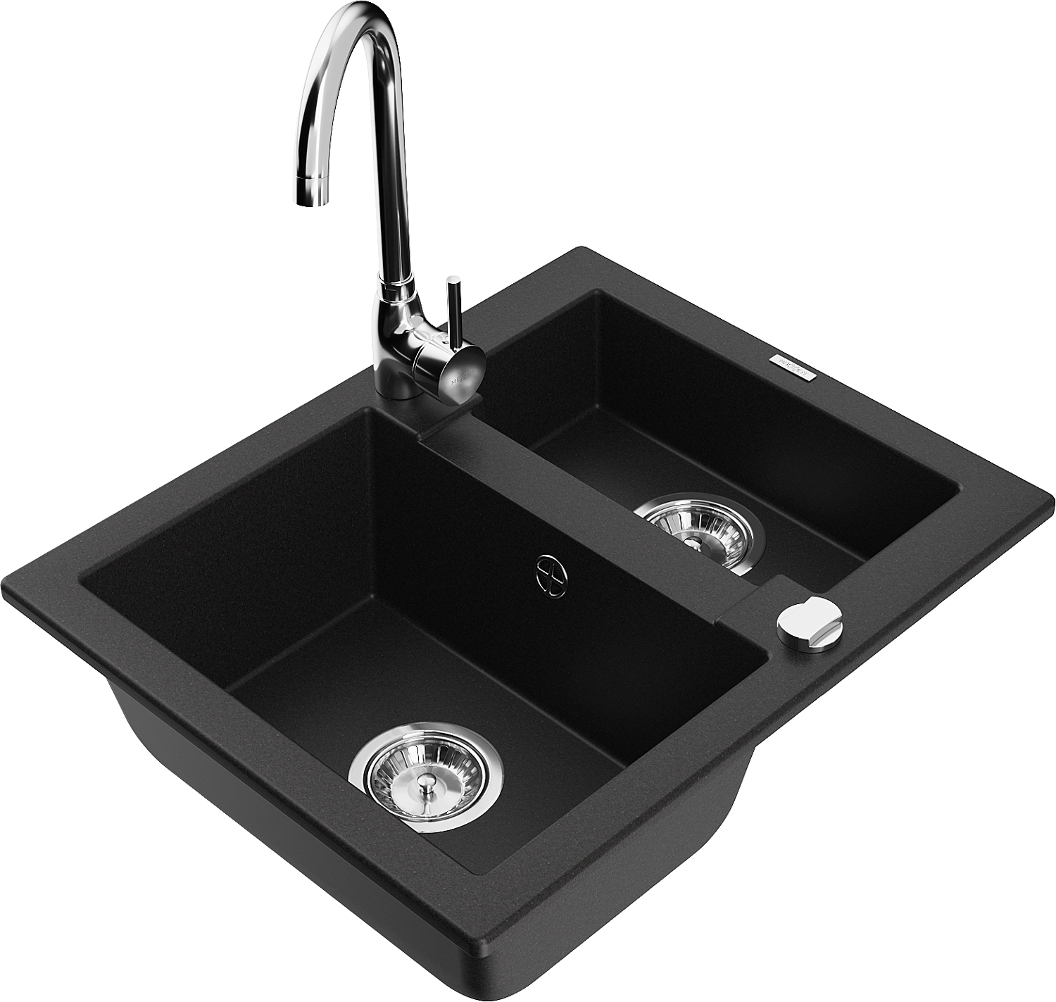 Mexen Carlos granitový drez 1,5-komorový s kuchynskou batériou Telma, čierny - 6518-77-670200-00