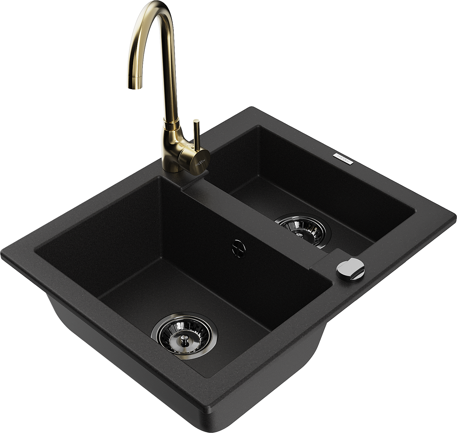 Mexen Carlos granitový drez 1,5-komorový s kuchynskou batériou Telma, čierny - 6518-77-670200-50-B