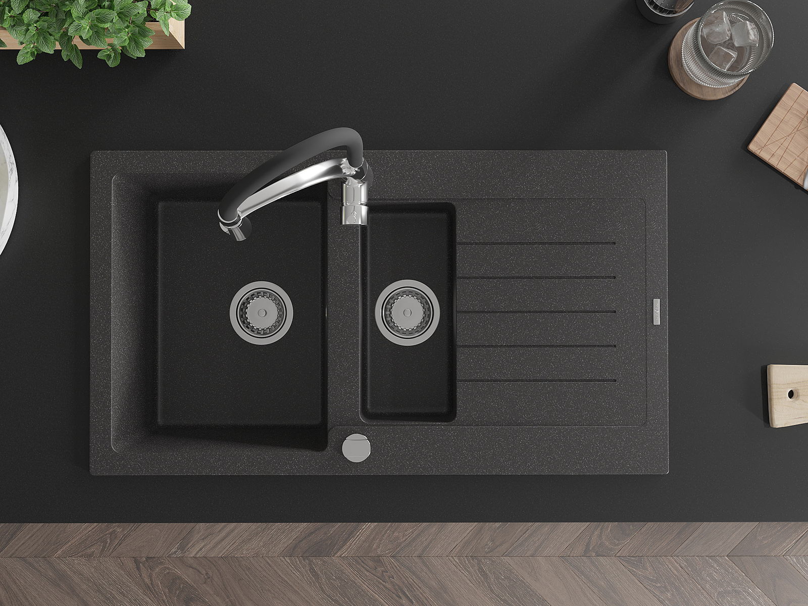 Povrch umývadla je odolný voči škvrnám a sfarbeniu, vďaka čomu sa ľahko čistí a zachováva si svoju farbu po dlhú dobu. Estetický a prakticky dopĺňajúci každú kuchyňu.