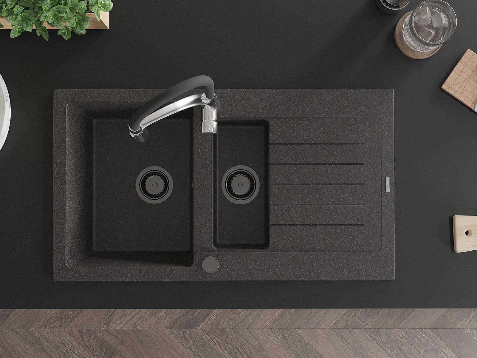 Povrch umývadla je odolný voči škvrnám a sfarbeniu, vďaka čomu sa ľahko čistí a zachováva si svoju farbu po dlhú dobu. Estetický a prakticky dopĺňajúci každú kuchyňu.