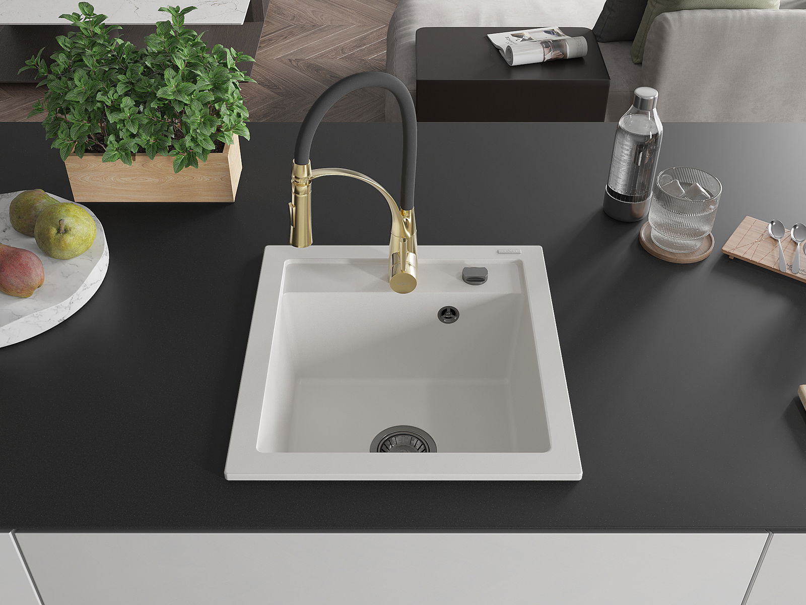 Povrch umývadla je odolný voči škvrnám a sfarbeniu, vďaka čomu sa ľahko čistí a zachováva si svoju farbu po dlhú dobu. Estetický a prakticky dopĺňajúci každú kuchyňu.