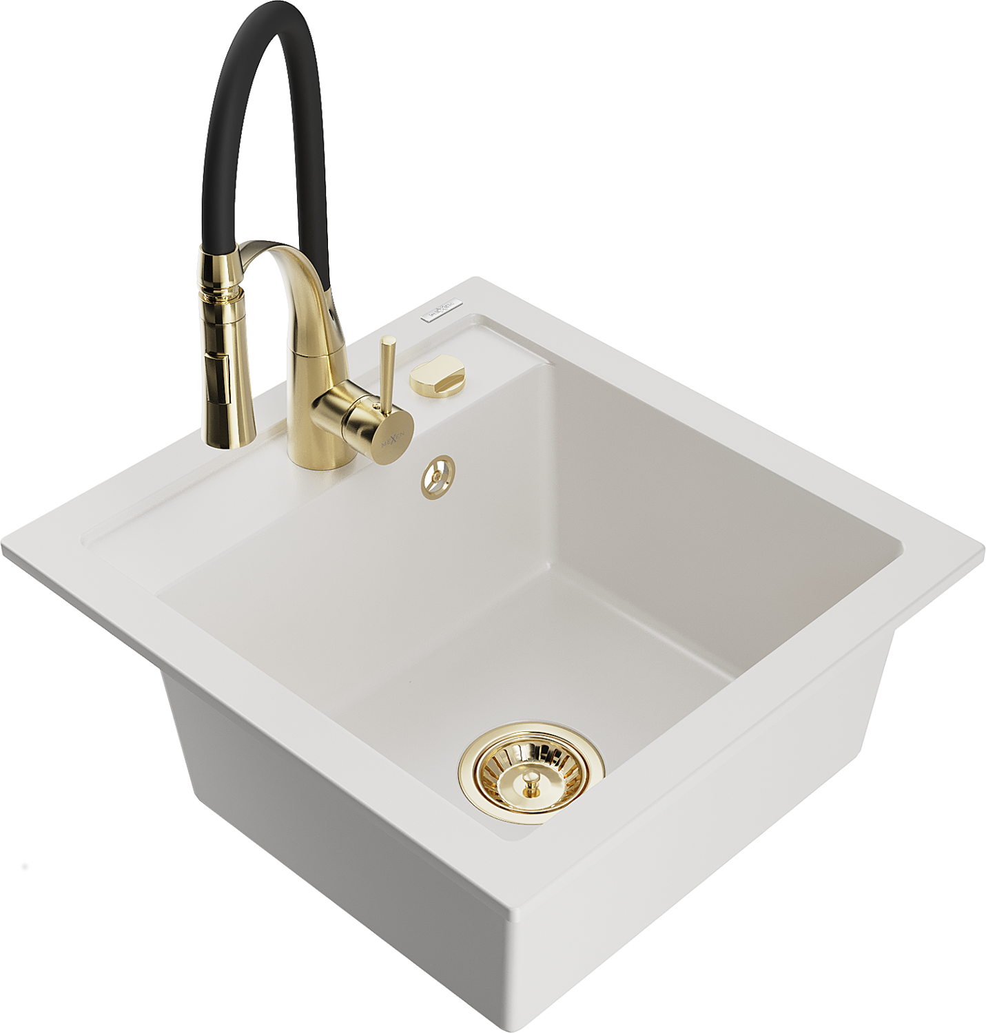 Mexen Vito žulový jedno-komorový drez s kuchynskou batériou Aster, biela - 6503-20-73450-57-B