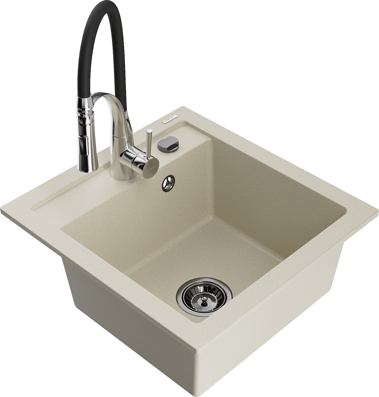Mexen Vito granitový drez 1-komorový s kuchynskou batériou Aster, béžový - 6503-69-73450-07-B