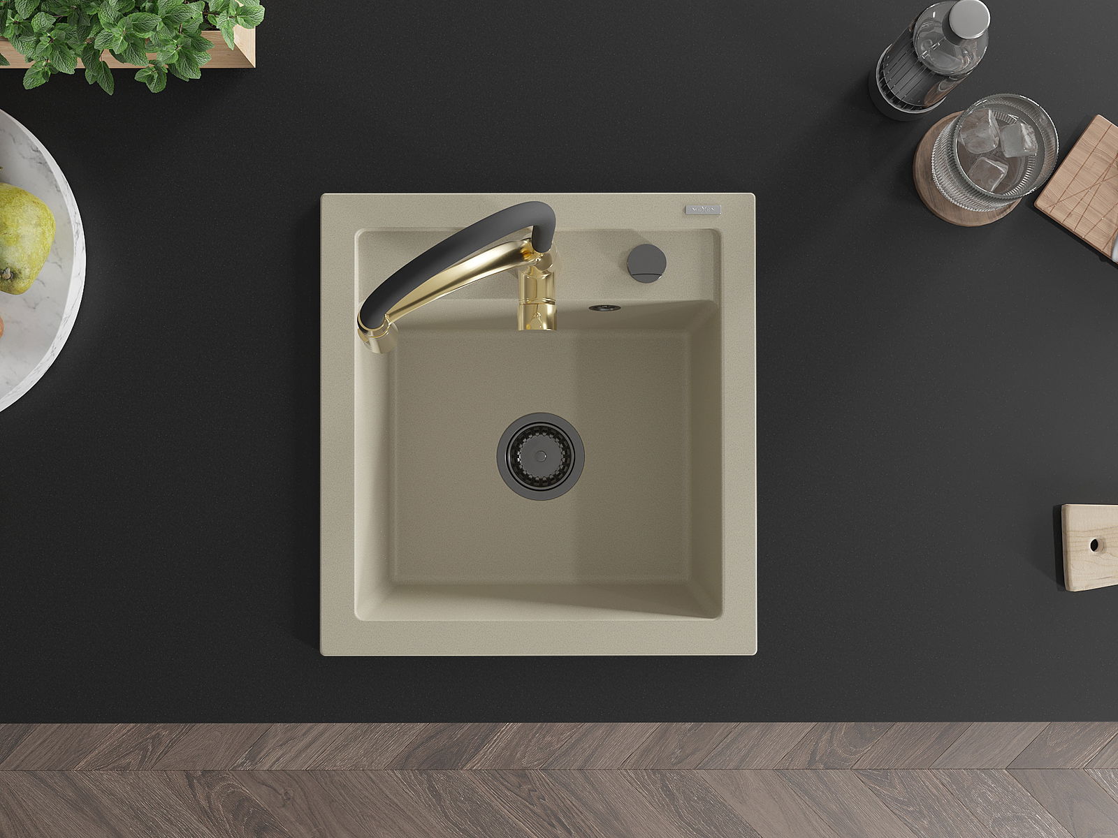 Povrch umývadla je odolný voči škvrnám a sfarbeniu, vďaka čomu sa ľahko čistí a zachováva si svoju farbu po dlhú dobu. Estetický a prakticky dopĺňajúci každú kuchyňu.
