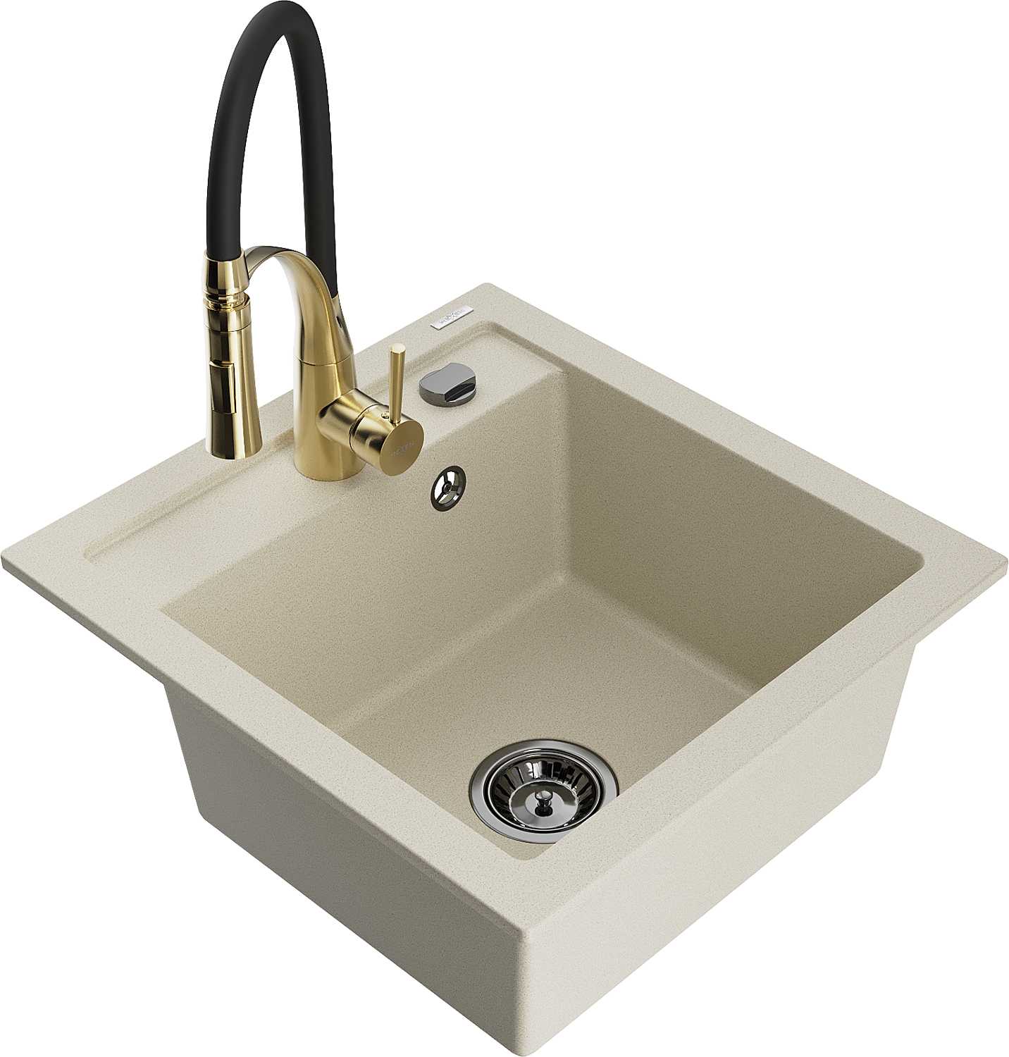 Mexen Vito žulový kuchynský drez s 1 komorou a kuchynskou batériou Aster, béžový - 6503-69-73450-57-B