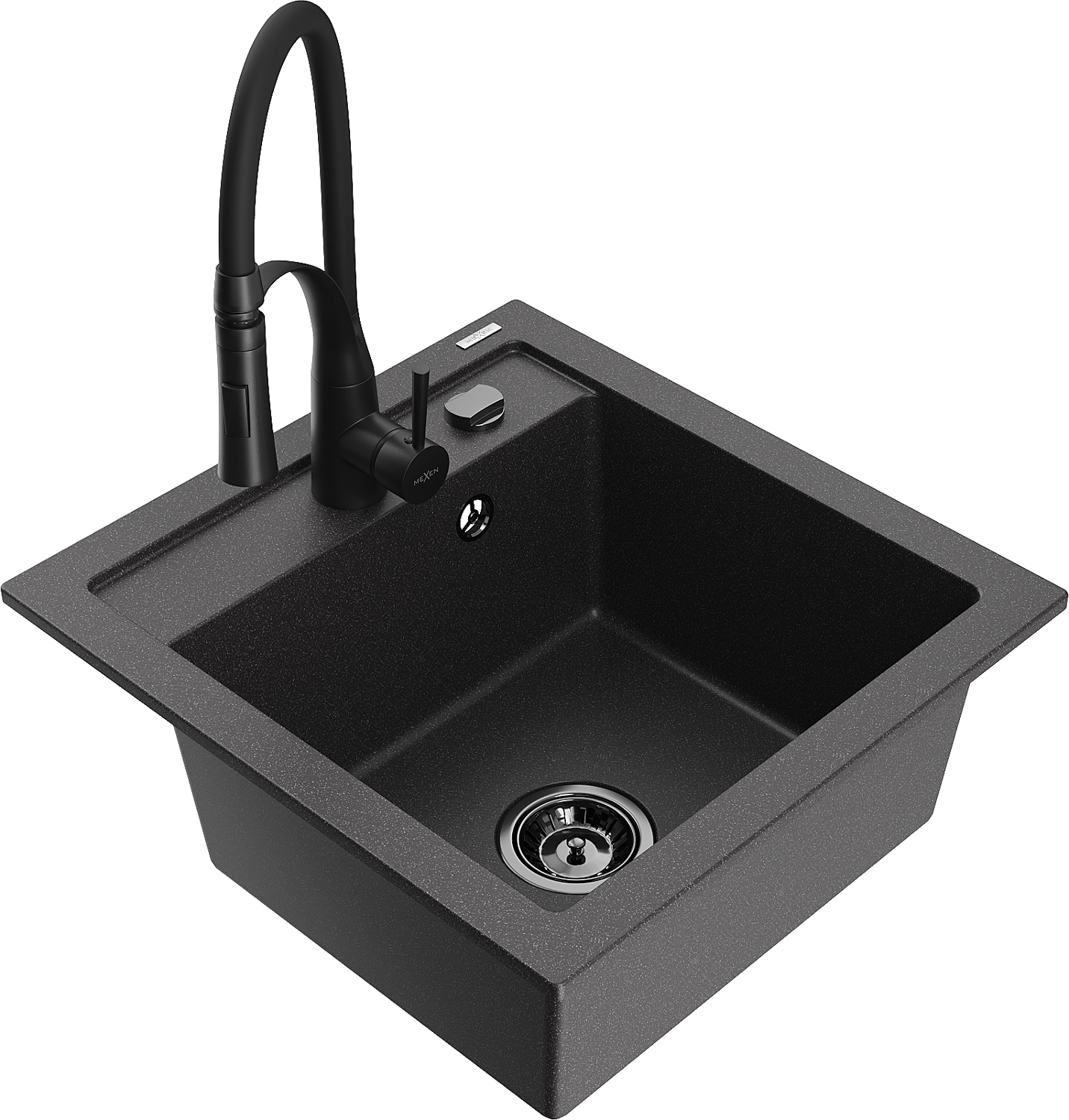 Mexen Vito jednokomorový kuchynský drez s granitom a kuchynskou batériou Aster, čierny s bodkami - 6503-76-73450-70-B