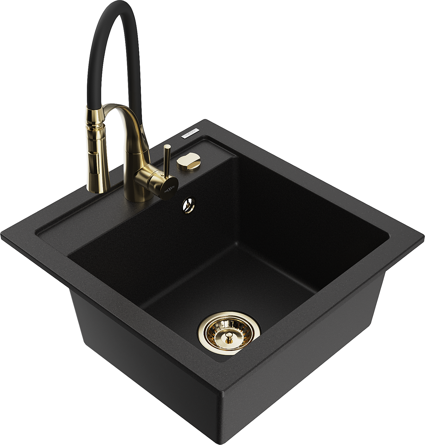 Mexen Vito granitový drez s 1 komorou a kuchynskou batériou Aster, čierny - 6503-77-73450-57-G