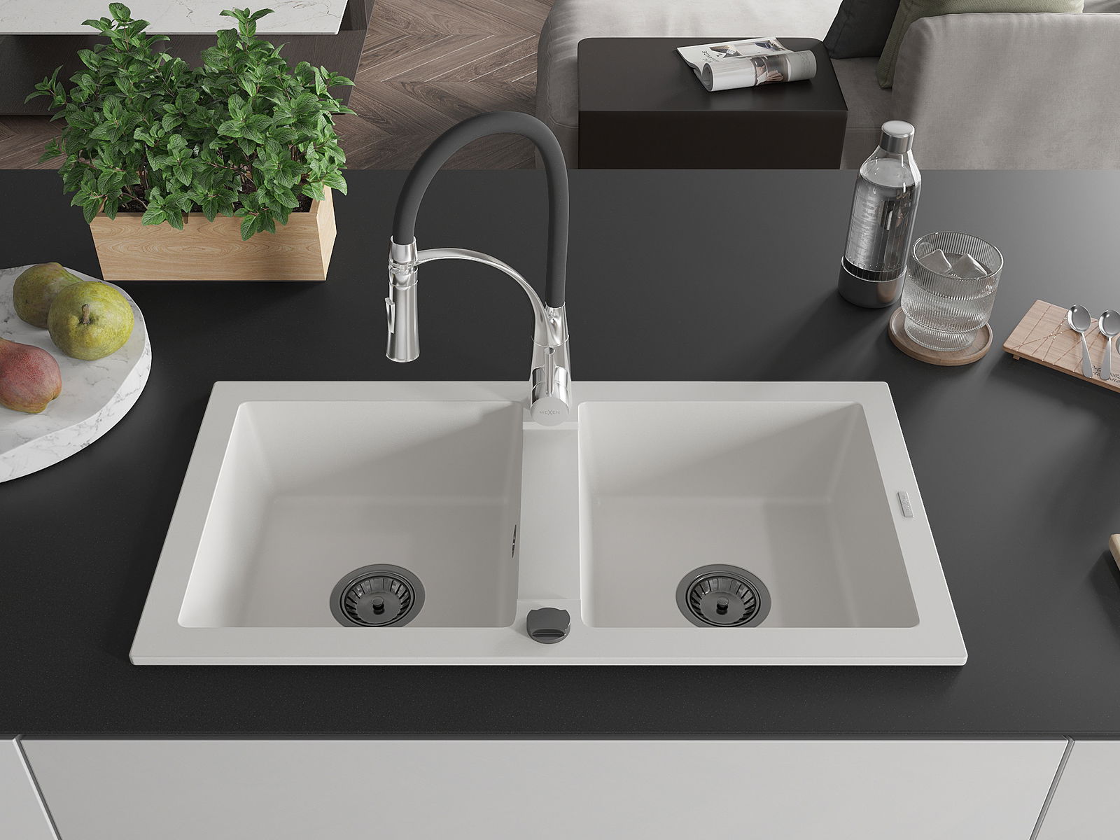 Povrch umývadla je odolný voči škvrnám a sfarbeniu, vďaka čomu sa ľahko čistí a zachováva si svoju farbu po dlhú dobu. Estetický a prakticky dopĺňajúci každú kuchyňu.