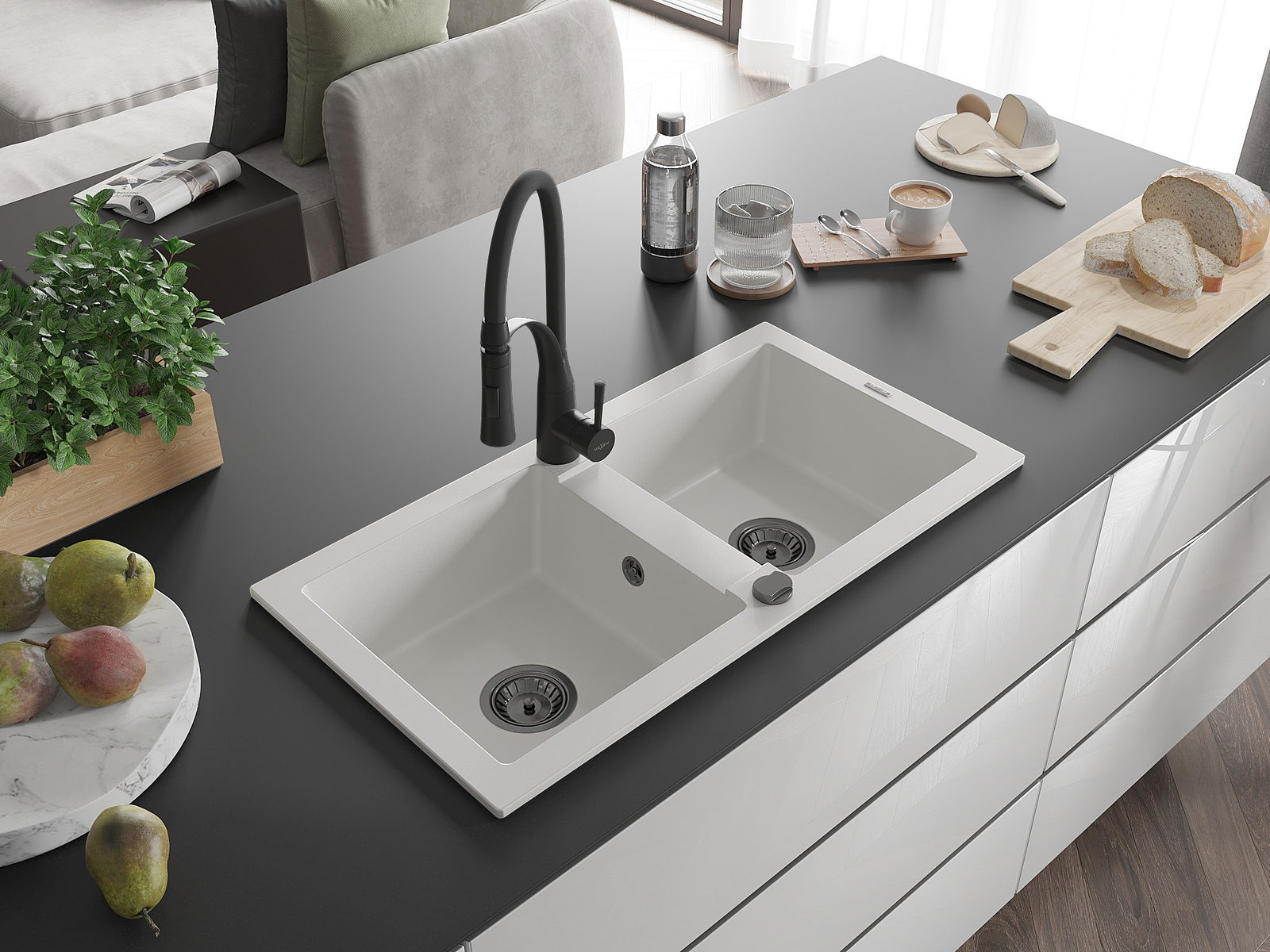 Povrch umývadla je odolný voči škvrnám a sfarbeniu, vďaka čomu sa ľahko čistí a zachováva si svoju farbu po dlhú dobu. Estetický a prakticky dopĺňajúci každú kuchyňu.