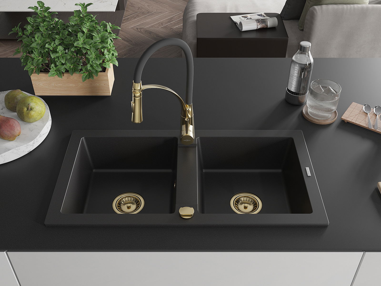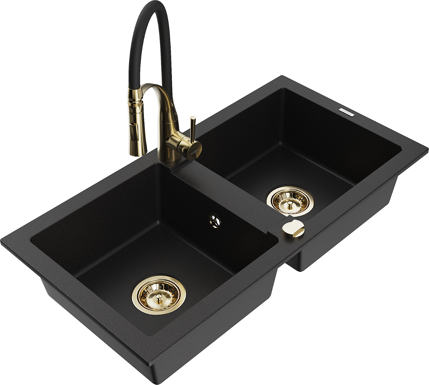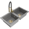 Mexen Mario granitový drez 2-komorový s kuchynskou batériou Aster, čierny - 6504-77-73450-57-G
