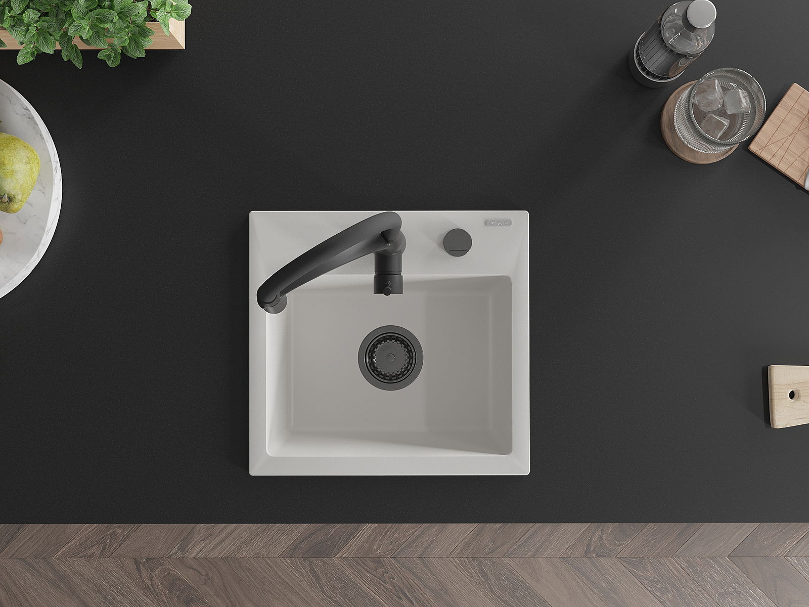 Povrch kuchynského drezu je odolný voči škvrnám a zafarbeniu, vďaka čomu sa ľahko udržiava a zachováva svoju farbu počas dlhého obdobia používania. Estetický a praktický doplnok pre každú kuchyňu.