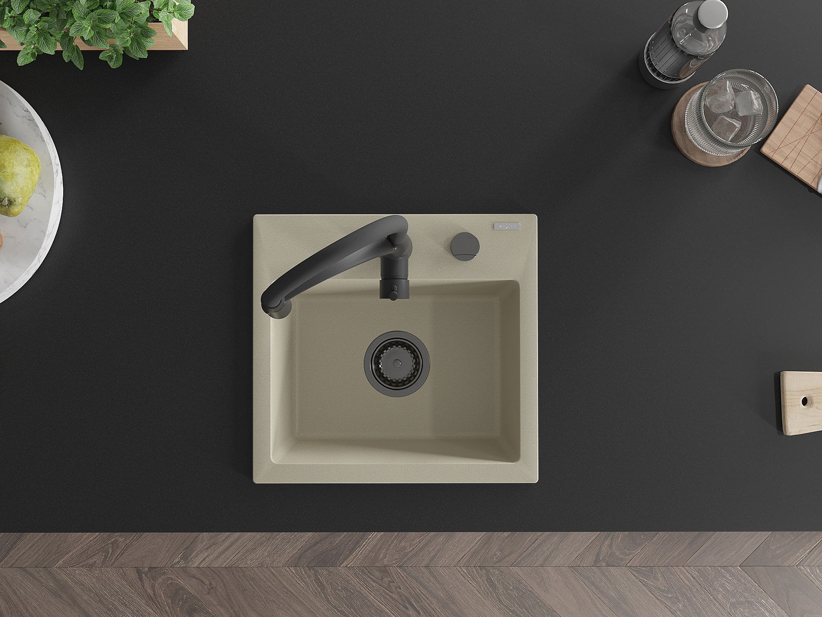 Povrch kuchynského drezu je odolný voči škvrnám a zafarbeniu, vďaka čomu sa ľahko udržiava a zachováva svoju farbu počas dlhého obdobia používania. Estetický a praktický doplnok pre každú kuchyňu.