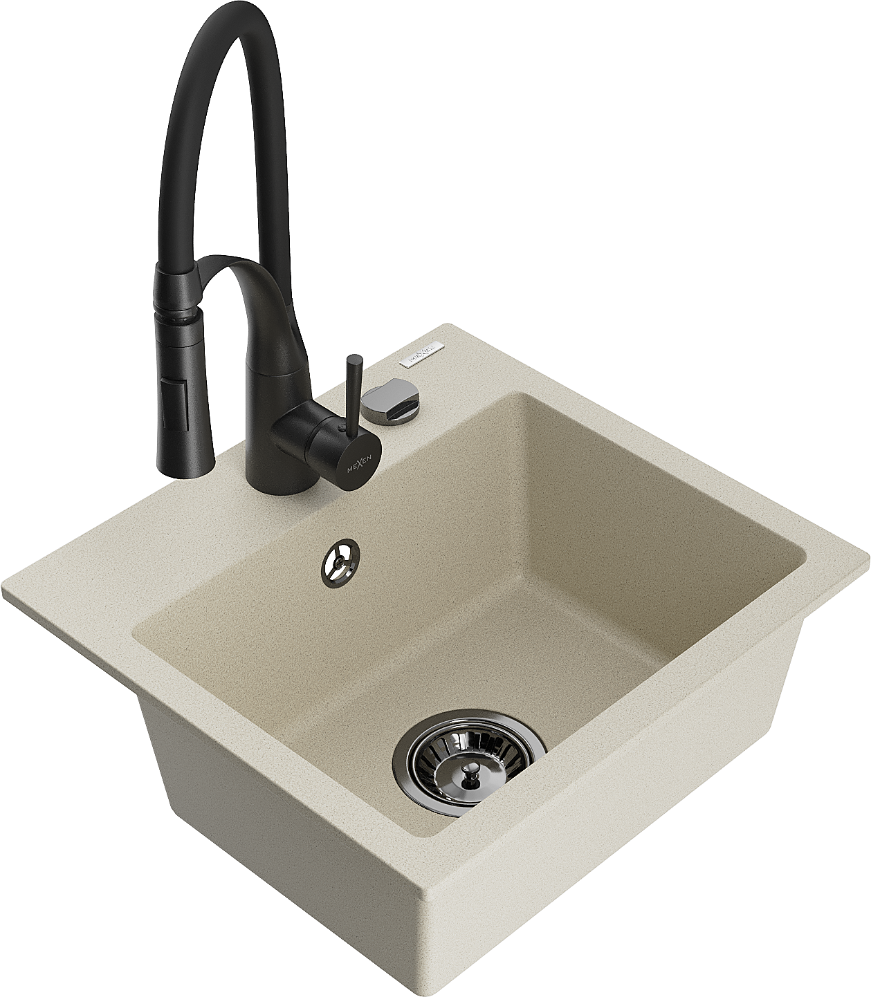 Mexen Milo granitový drez 1-komorový s kuchynskou batériou Aster, béžový - 6505-69-73450-70-B