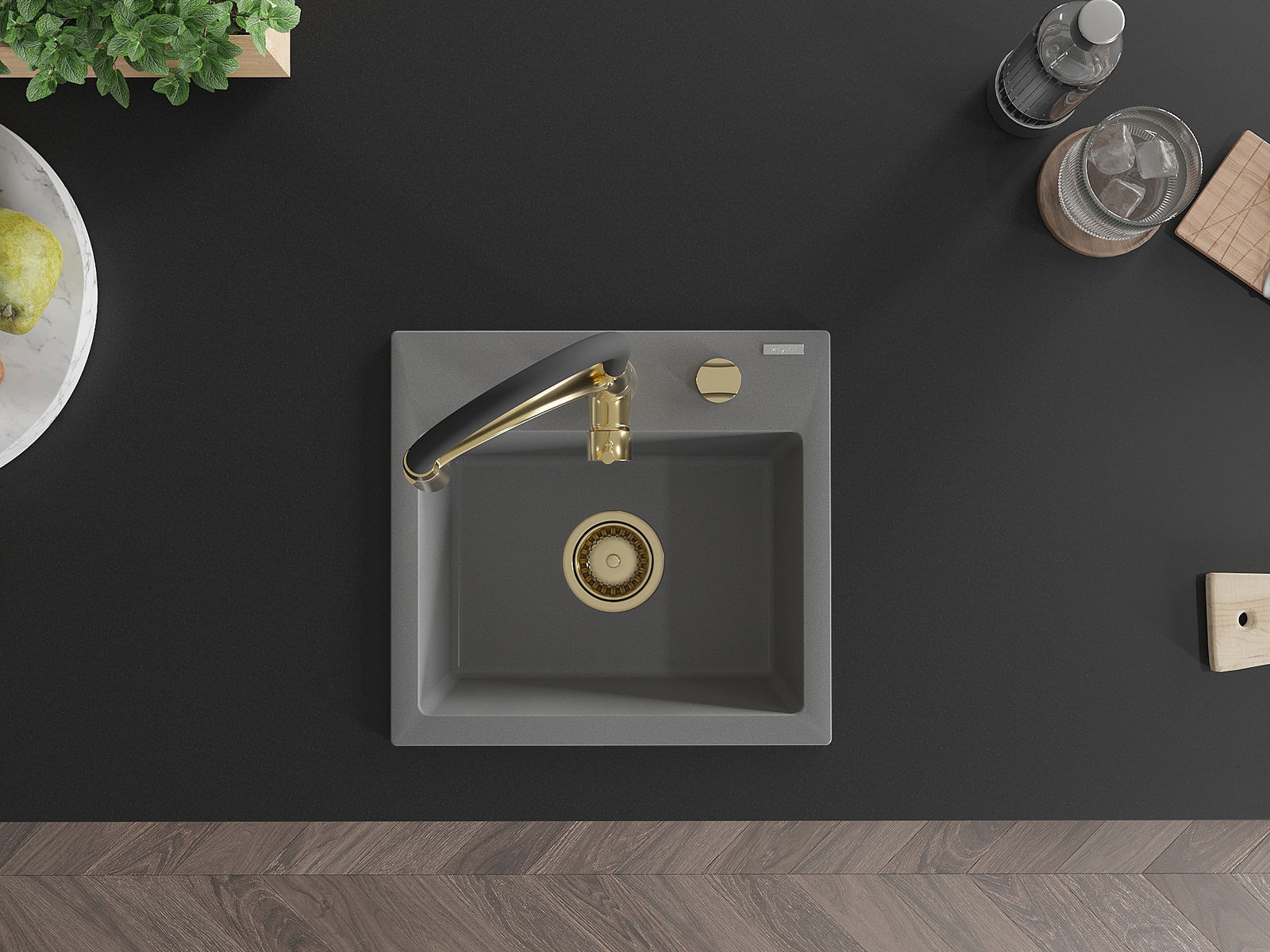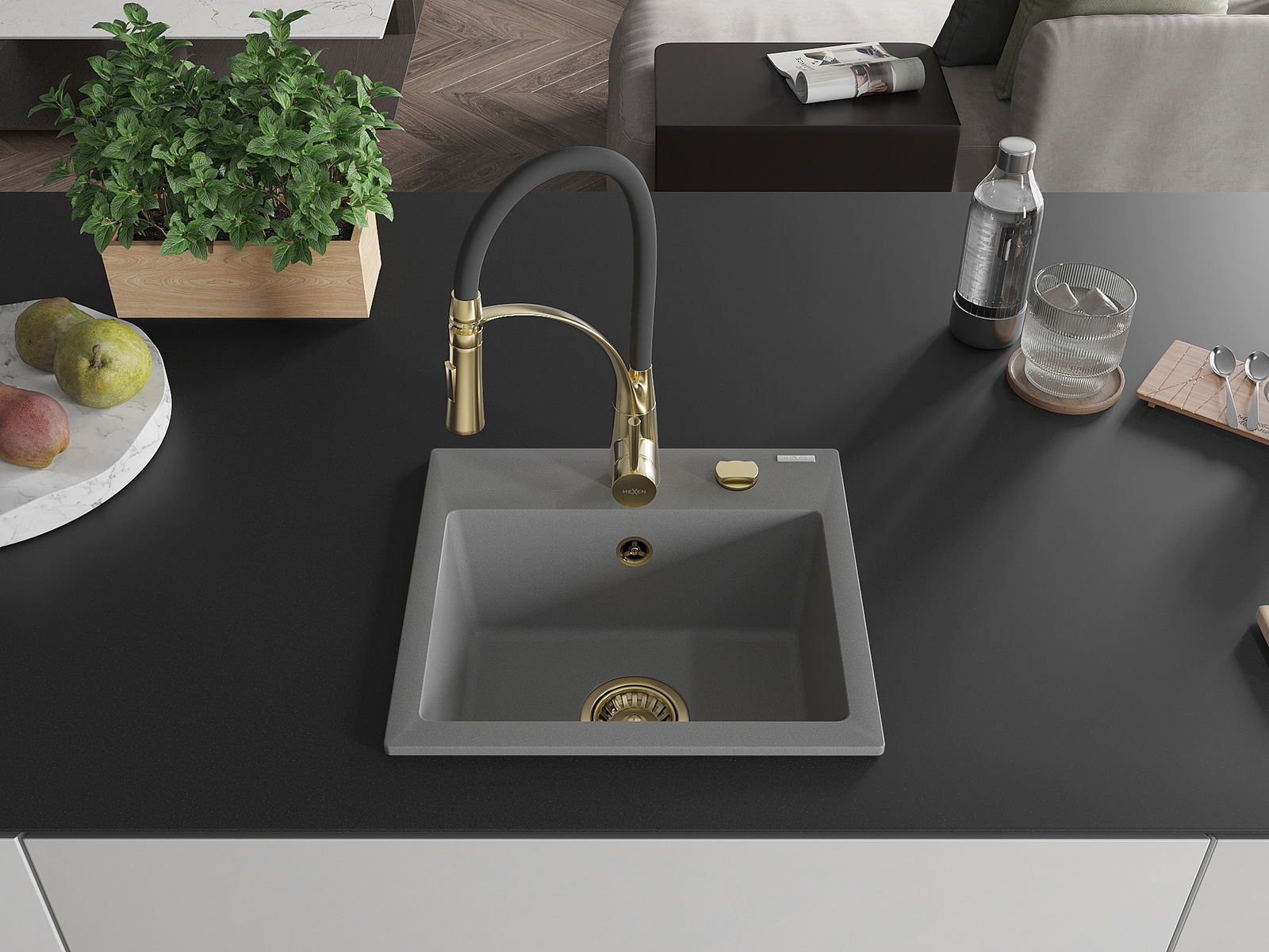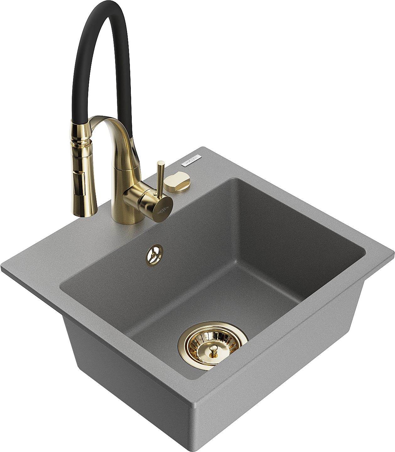 Mexen Milo granitový drez 1-komorový s kuchynskou batériou Aster, sivý - 6505-71-73450-57-G