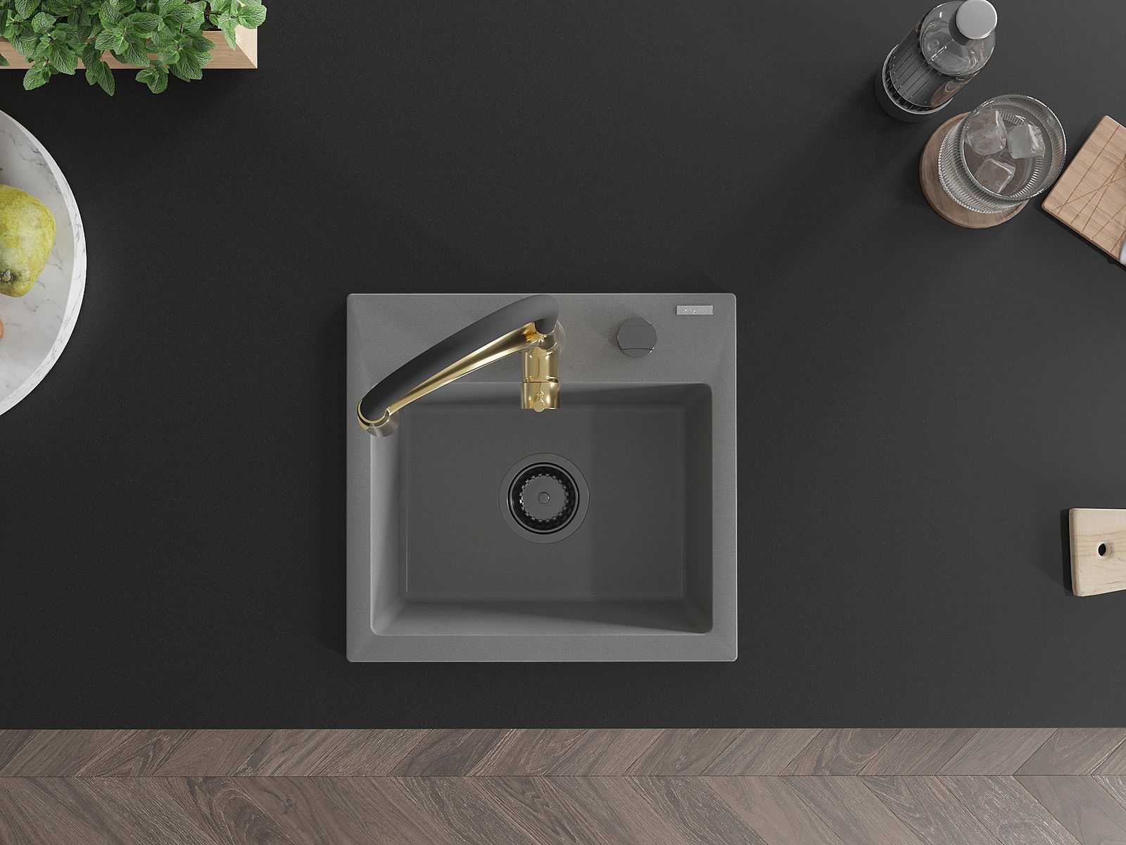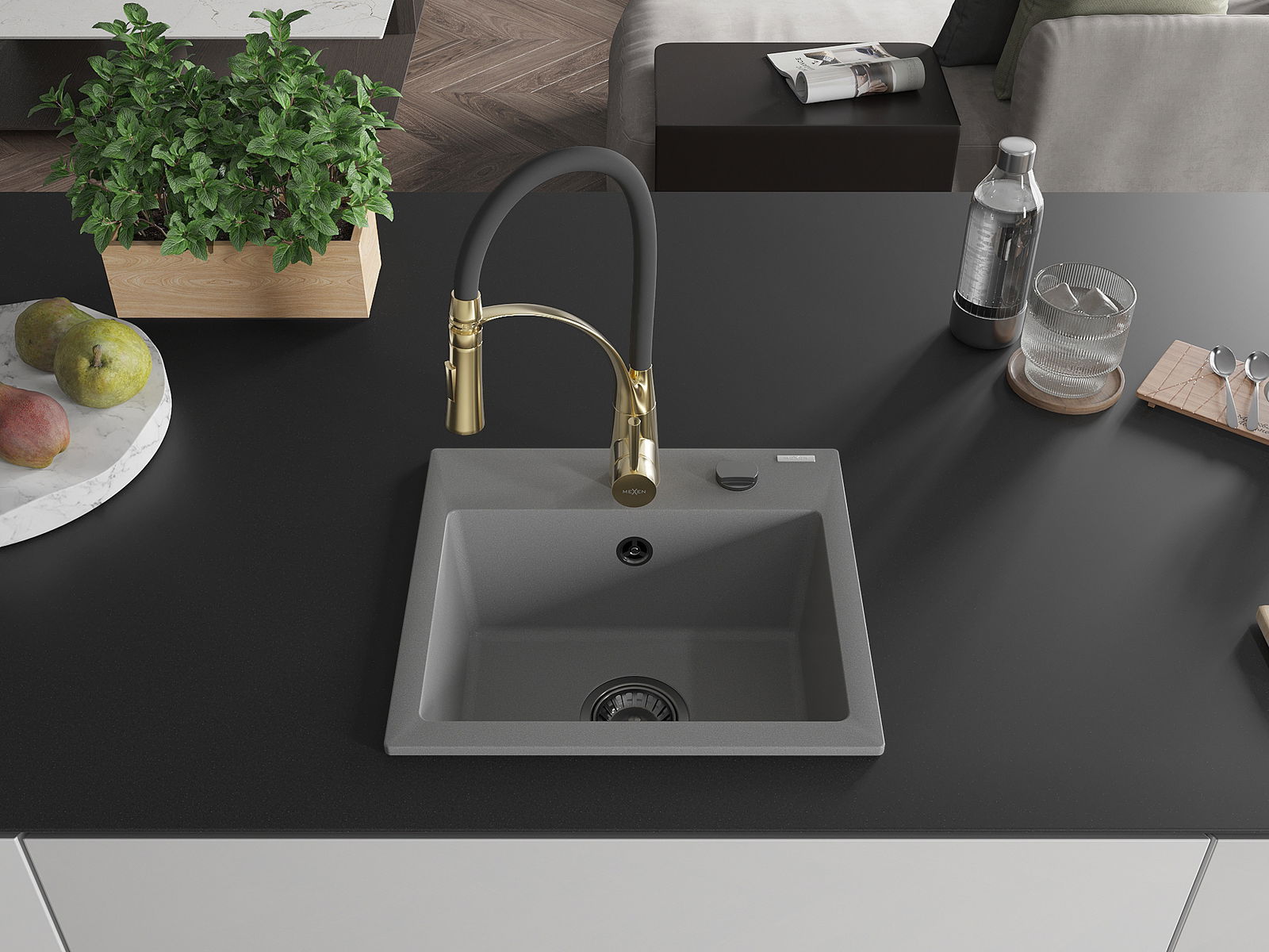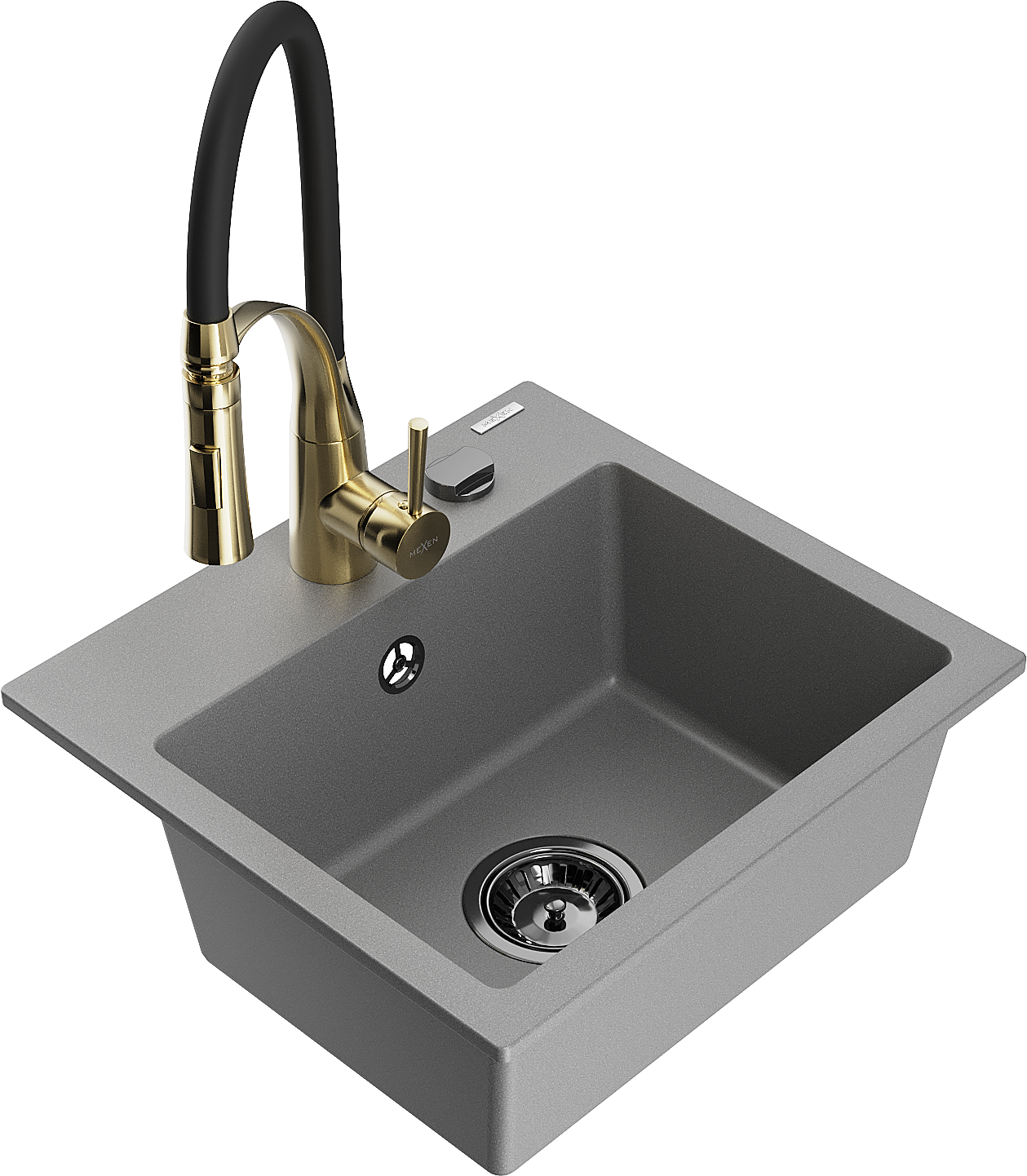 Mexen Milo granitový drez 1-komorový s kuchynskou batériou Aster, sivý - 6505-71-73450-57-B