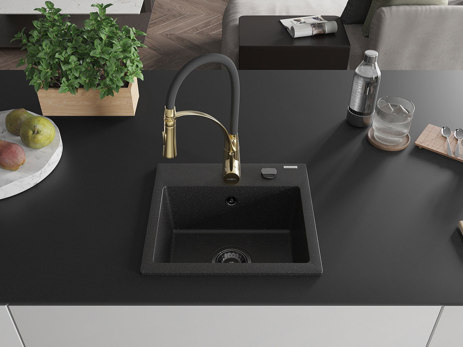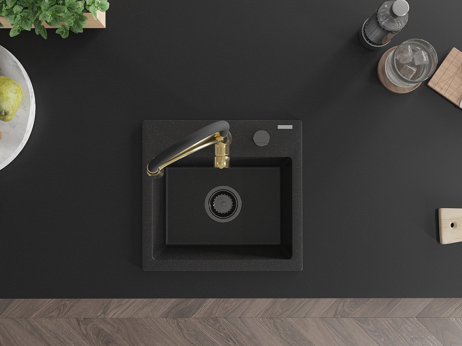 Mexen Milo granitový drez 1-komorový s kuchynskou batériou Aster, čierny/strieborný metalický - 6505-73-73450-57-B