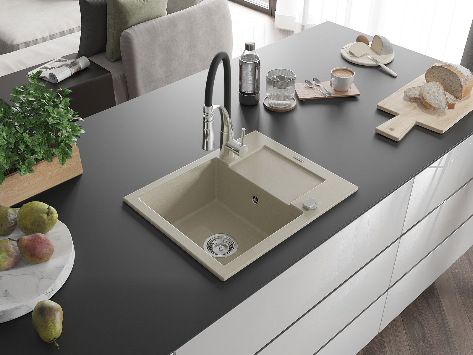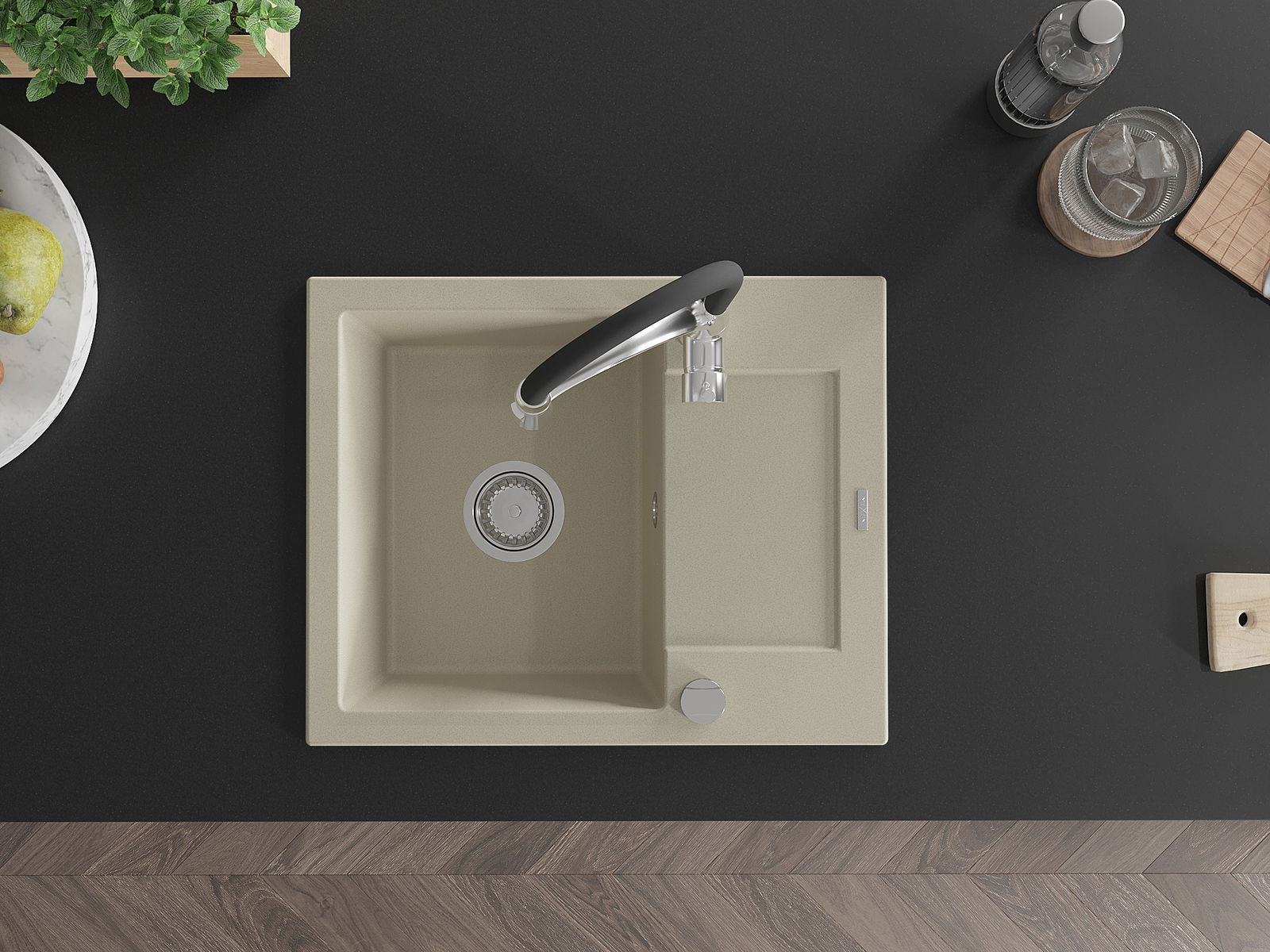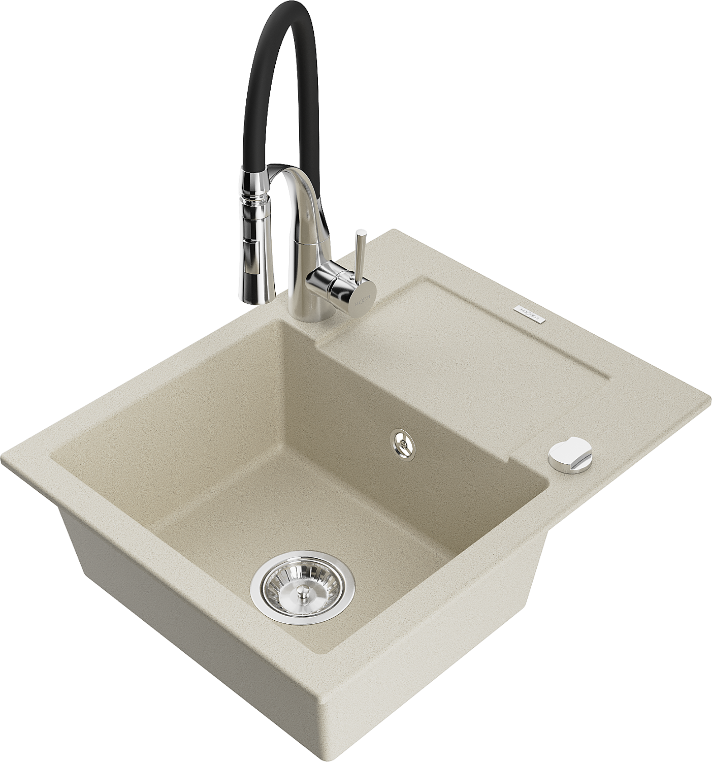 Mexen Enzo granitový drez s 1 komorou s odkvapom a kuchynskou batériou Aster, béžový - 6506-69-73450-07