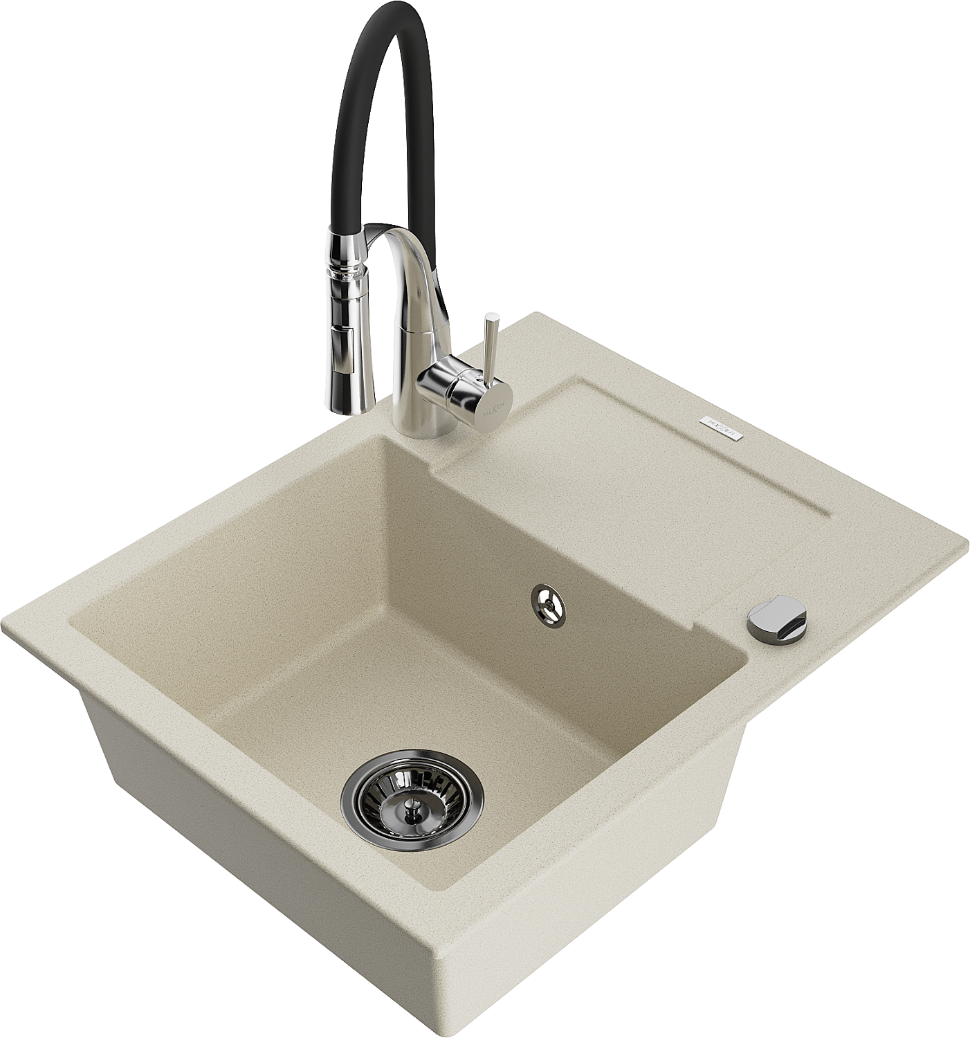 Mexen Enzo granitový drez 1-komorový s odkvapkávačom a kuchynskou batériou Aster, béžový - 6506-69-73450-07-B