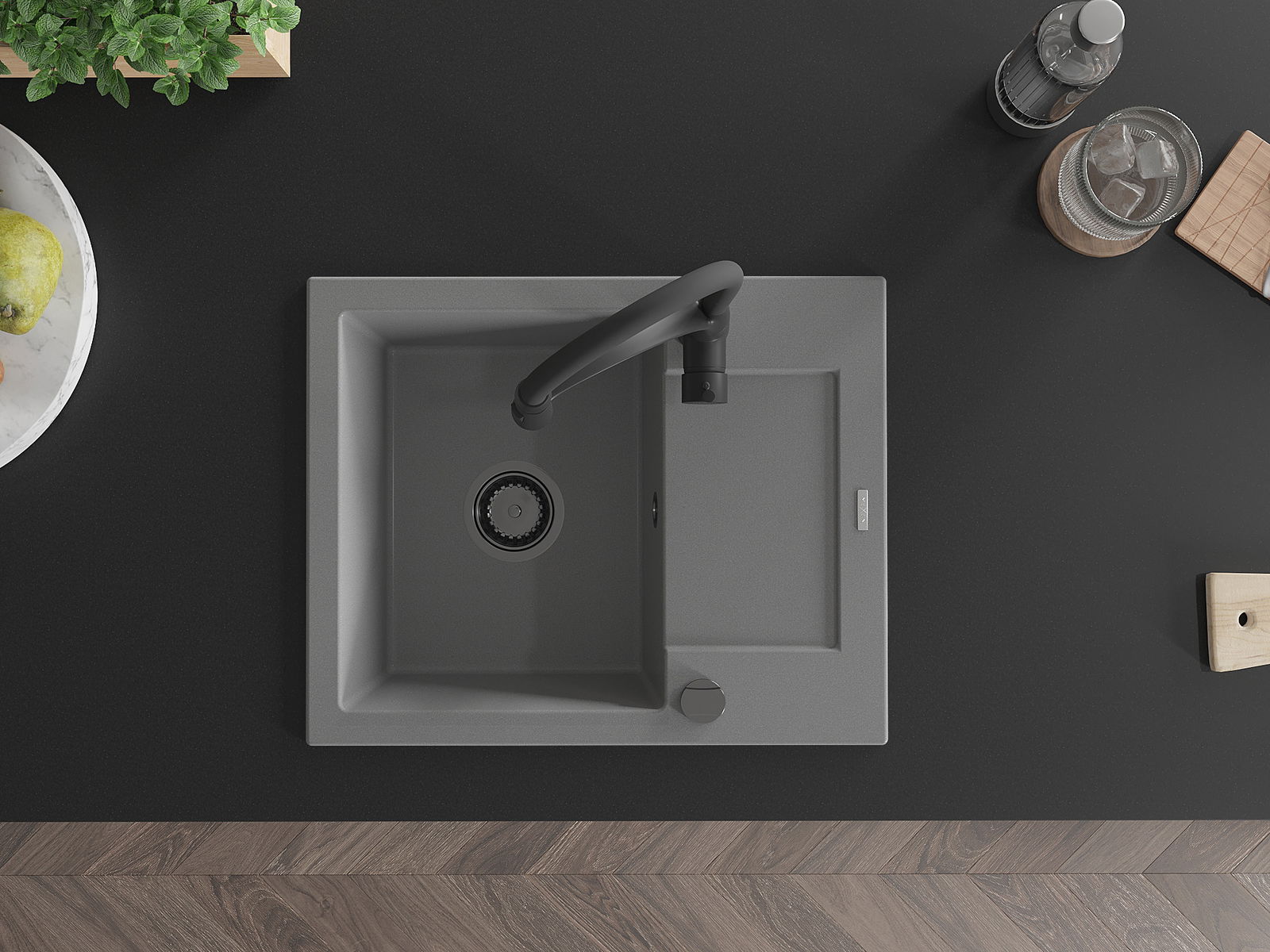 Povrch umývadla je odolný voči škvrnám a sfarbeniu, vďaka čomu sa ľahko čistí a zachováva si svoju farbu po dlhú dobu. Estetický a prakticky dopĺňajúci každú kuchyňu.