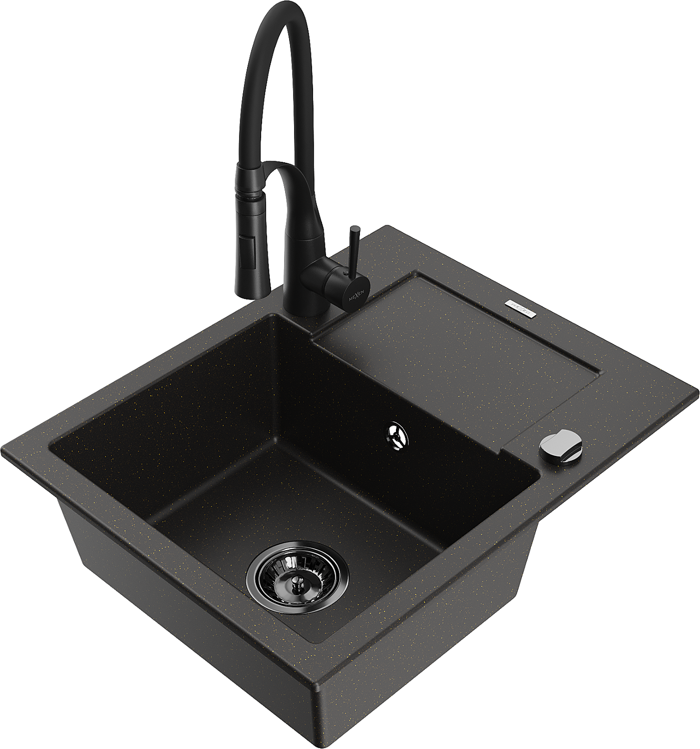 Mexen Enzo jednodrez s odkvapkávačom a kuchynskou batériou Aster, čierny/zlatý metalik - 6506-75-73450-70-B