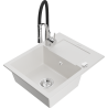 Povrch kuchynského drezu je odolný voči škvrnám a zafarbeniu, vďaka čomu sa ľahko udržiava a zachováva svoju farbu počas dlhého obdobia používania. Estetický a praktický doplnok pre každú kuchyňu.