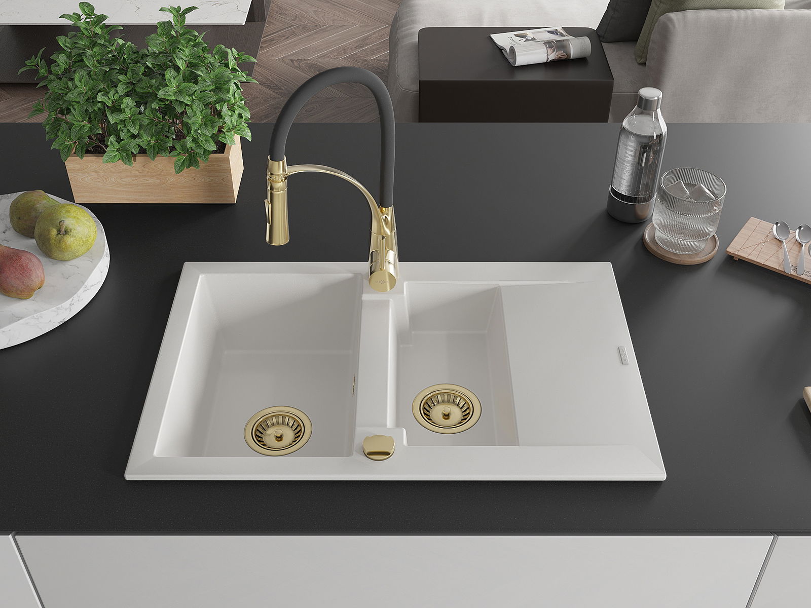 Povrch umývadla je odolný voči škvrnám a sfarbeniu, vďaka čomu sa ľahko čistí a zachováva si svoju farbu po dlhú dobu. Estetický a prakticky dopĺňajúci každú kuchyňu.