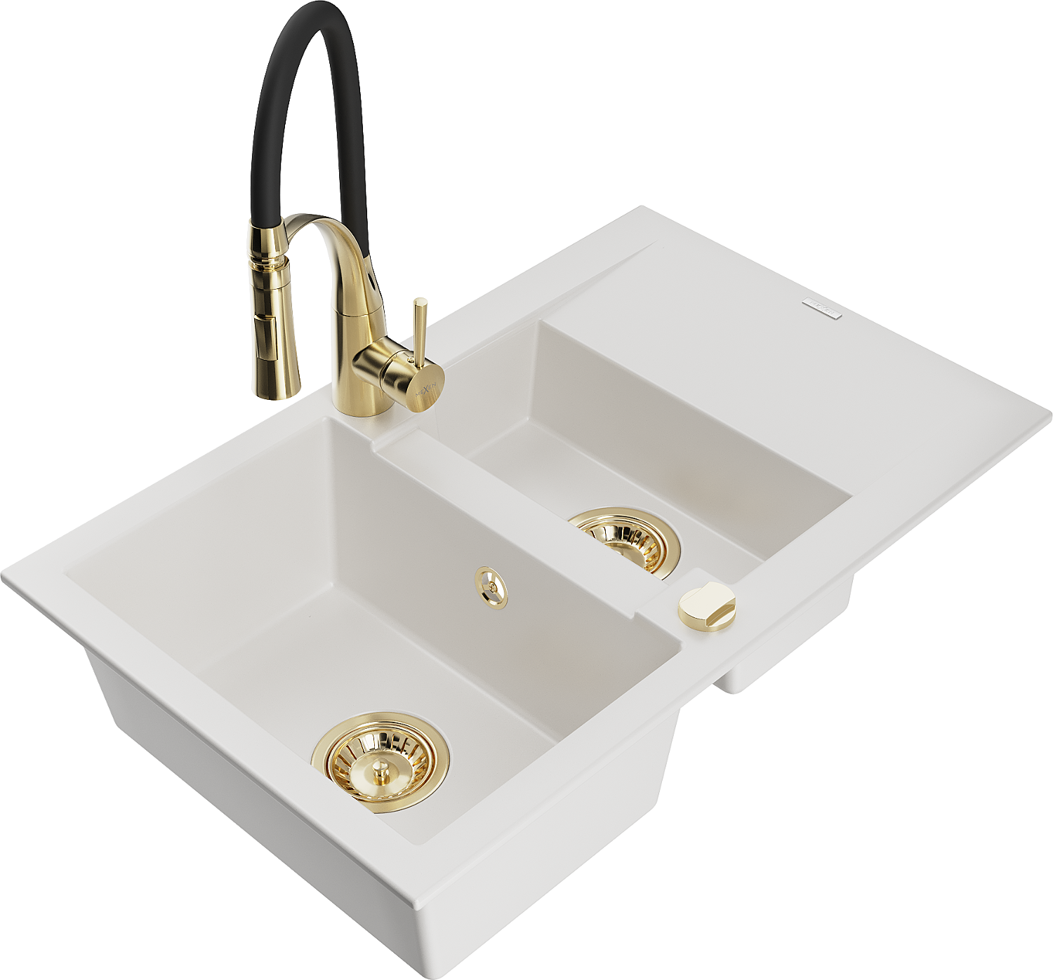 Mexen Gaspar granitový drez 1,5-komorový s odkvapkávačom a kuchynskou batériou Aster, biely - 6507-20-73450-57-G